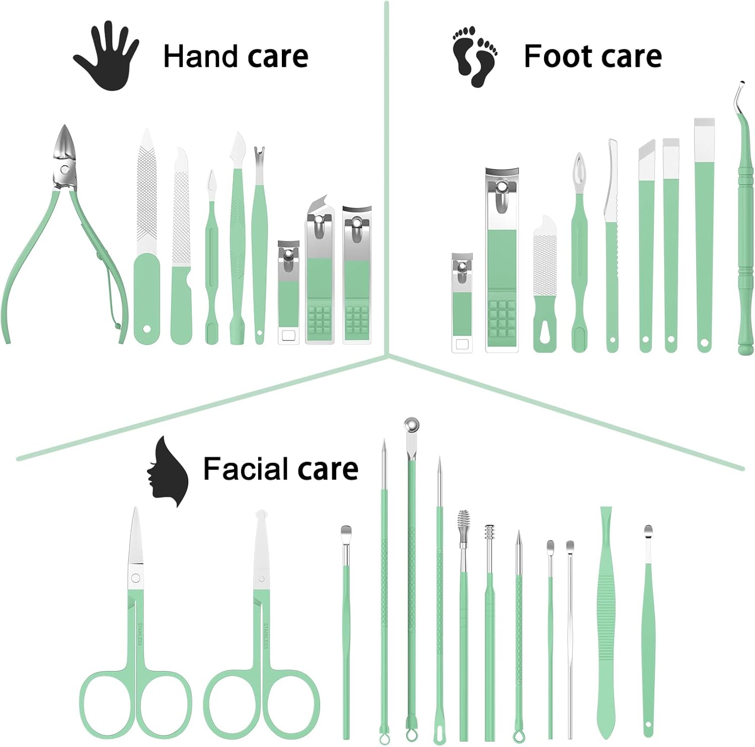 - Smart choice: 31 kinds of care tools for hands, feet and face, can be used independently to avoid infections. Choose this product for personal hygiene.