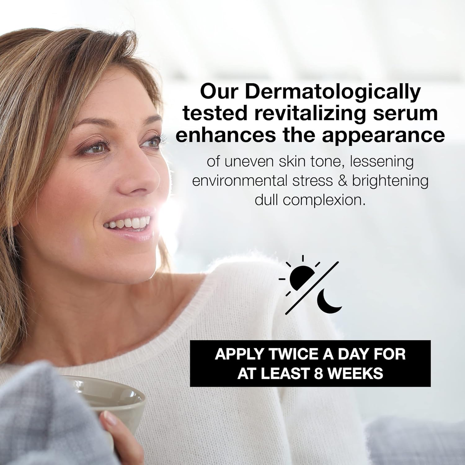 - Replenishes and Firms: This radiance facial serum with hyaluronic acid and niacinamide delivers hydration, supports the moisture barrier, and enhances firmness. This gentle Vit C serum for the face promotes smoother, plumper, and more radiant skin.