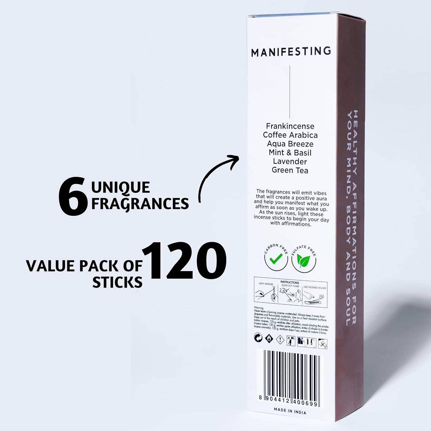 - Fragrance Notes – This incense pack combines uplifting earthy notes with floral undertones with fragrances like Frankincense insense, Coffee inscents, Aqua Breeze, Mint and Basil, Lavender insences, Green Tea Inscents-Sticks. Suitable for meditation rooms, bedrooms, living areas, and even office spaces.