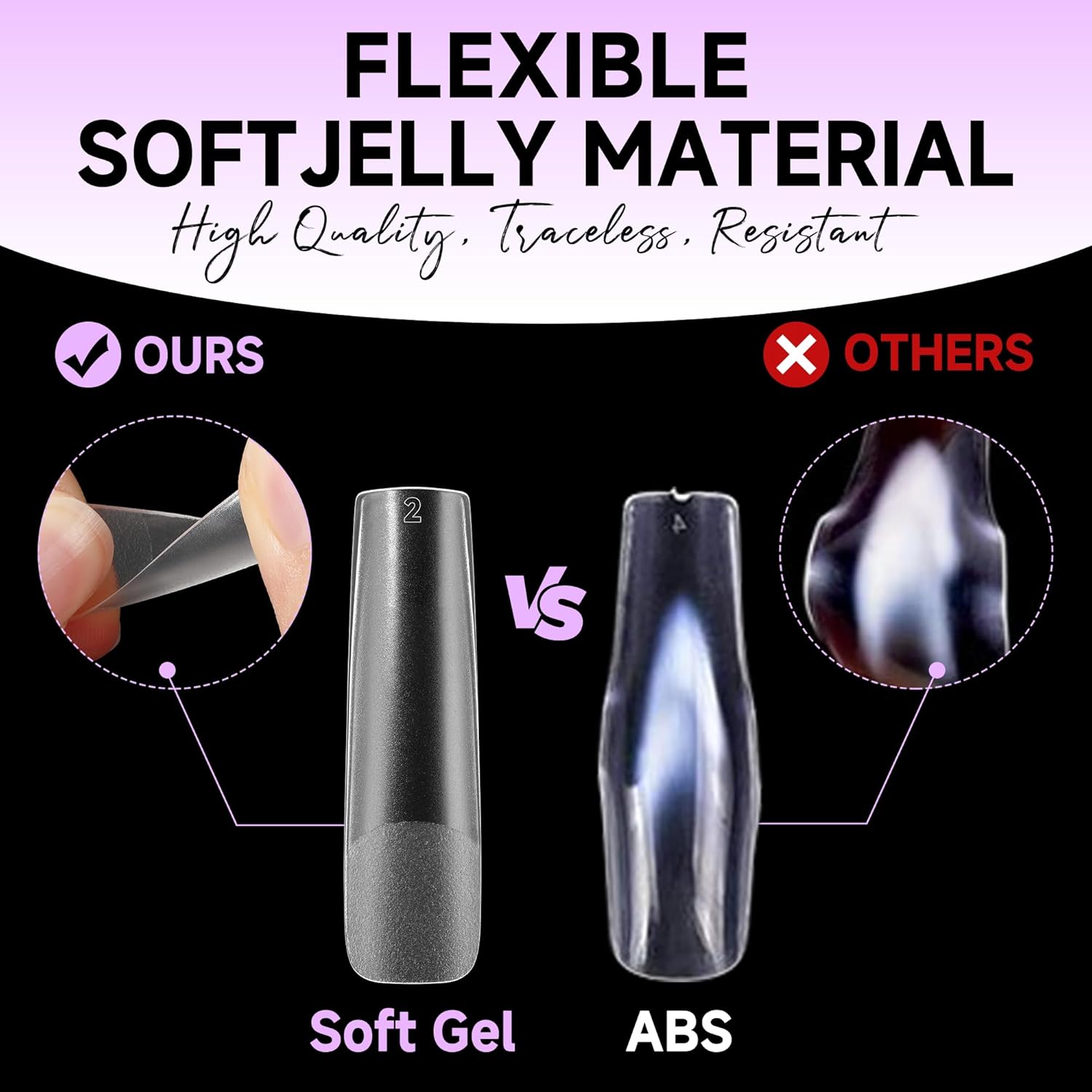 - ❤️Long Square Tip with No Trace :The fake nails is gelly soft tips and will make no trace even bend, bright clear you can more easily press, trim, paint flat false nails to make your dream nails shape. Real DIY manicure gel tips.