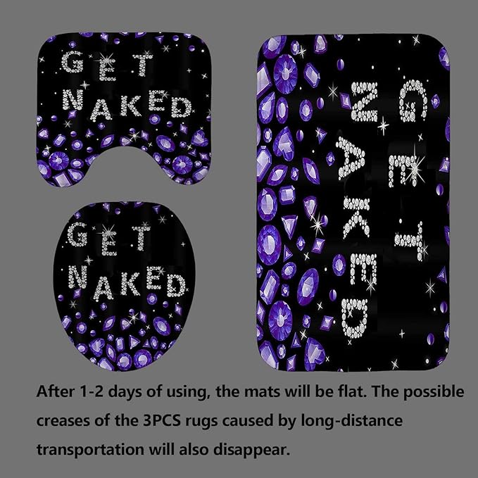 4PCS Luxury Purple Diamond Shower Curtain Set, Bling Rhinestone Gem Crystal Jewelry Teenage Girls Women Bathroom Decor, Waterproof Fabric Black Shower Curtain, Non-Slip Bath Mat Bathroom Rugs