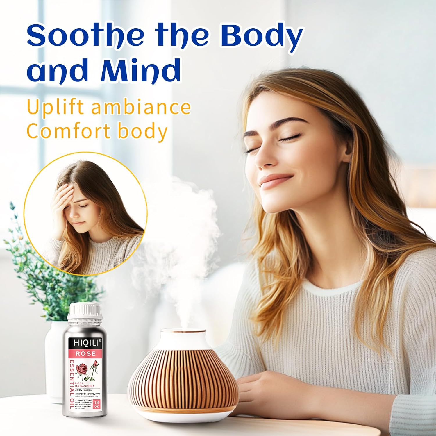 HIQILI Rose Essential Oil for Diffuser, Soap, Perfume & Candle Making - 16 Fl Oz