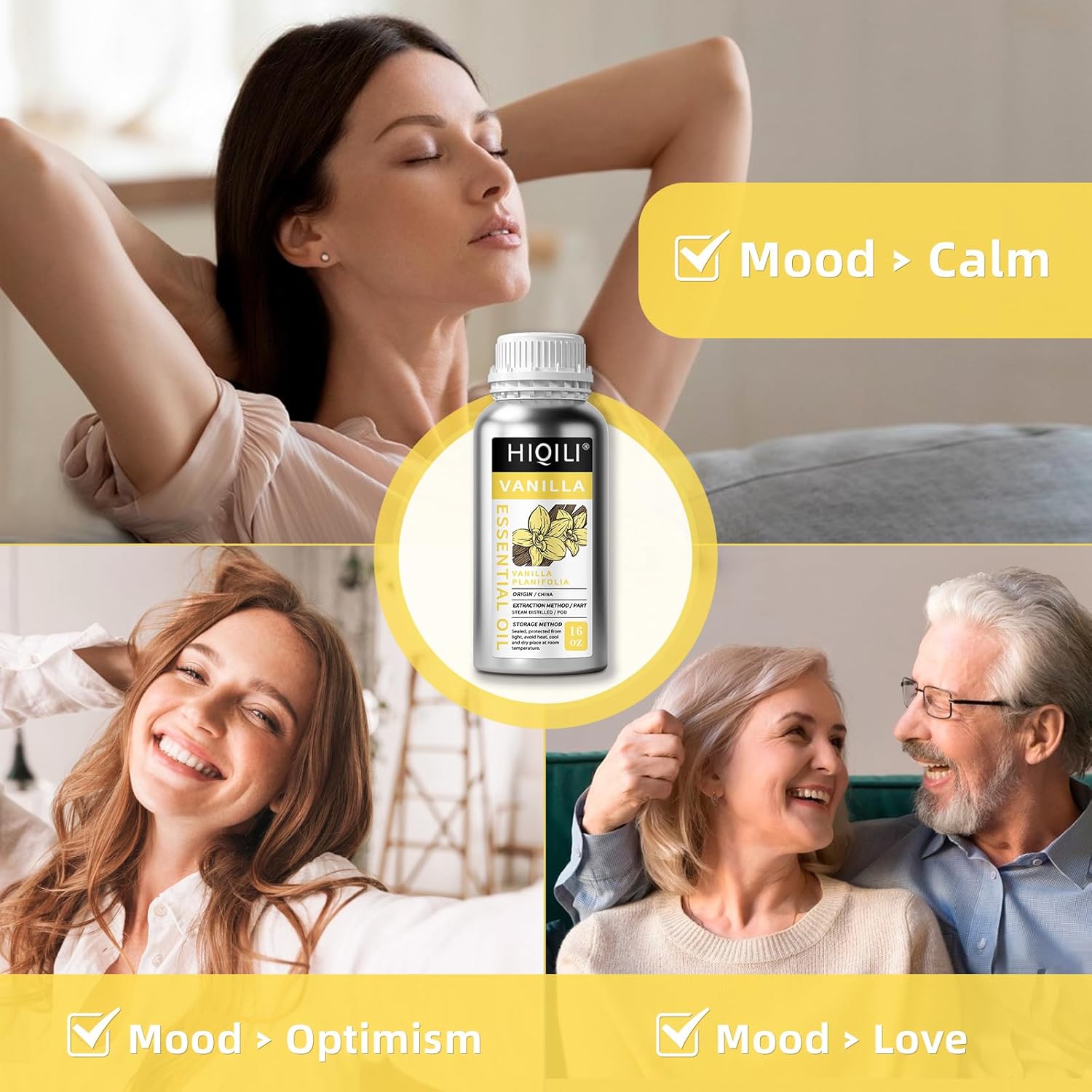 HIQILI 16 Ounces Vanilla Essential Oil, Strong Fragrance for Body Lotion, Candle Making, Soap, Aromatherapy -16 Fl Oz