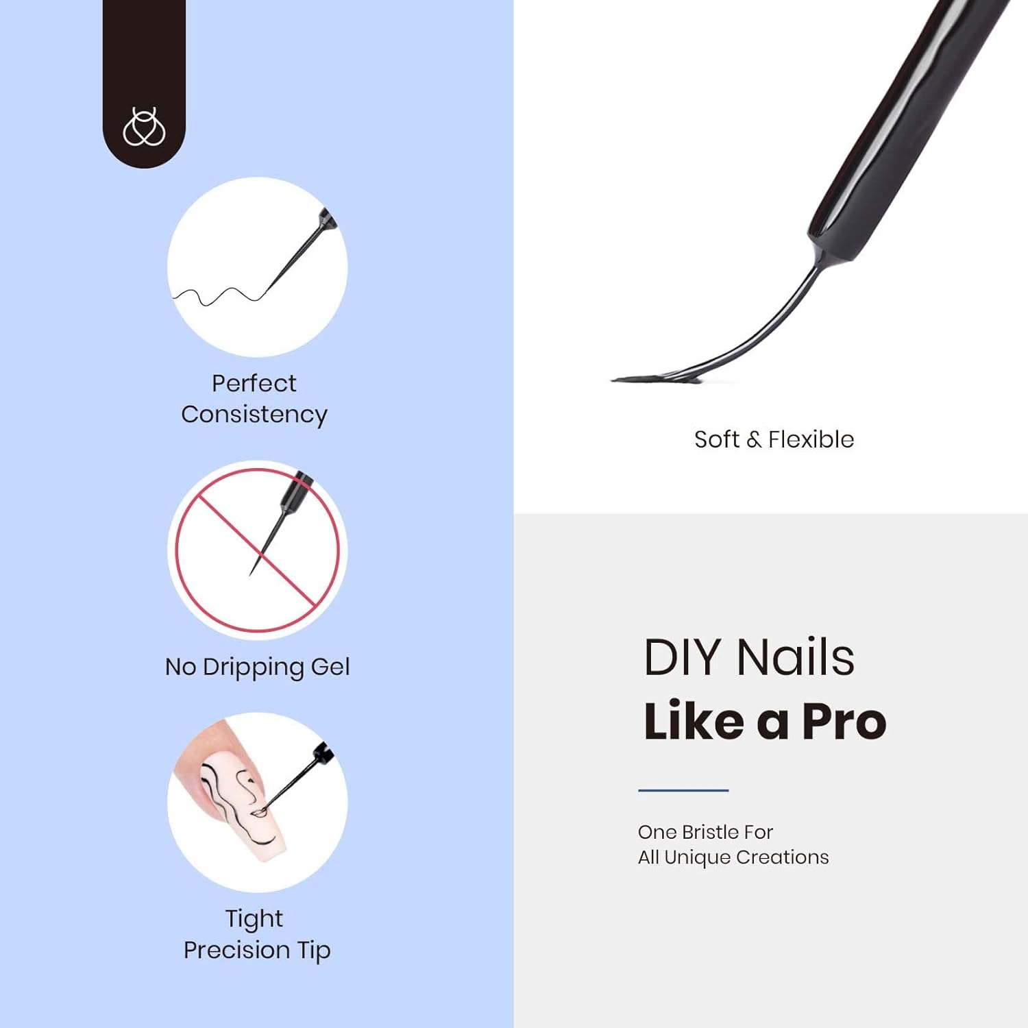 - 【Beetles Nail Art Polish Set】: Beetles Gel Liner Nail Polish Set includes 12 gorgeous and popular colors, such as blue emerald green purple colors, perfect for those trendy squiggly lines abstract painting that is so popular now,also works perfectly for adding a French line! With the built thin brushes in, you don't have to get out your set of brushes for adding details and lines.