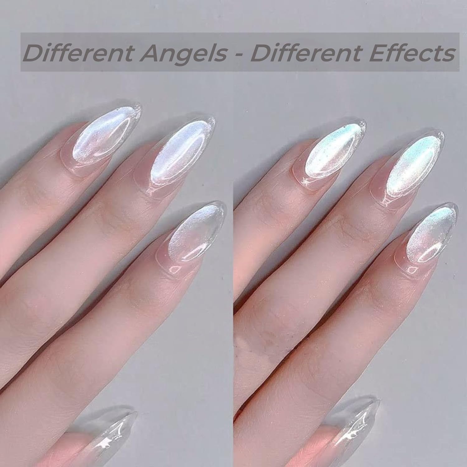 2Pcs Pearl Chrome Nail Powder - Ice Transparent Aurora, White Chameleon Iridescent Pigment for Nails - High Gloss Pearlescent Glitter (2pc White)