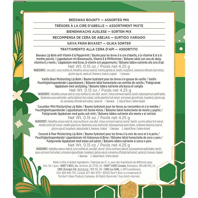 - PACKAGE CONTENTS: One package of Burt’s Bees Lip Balm Beeswax Bounty Gift Set contains four 0.15 oz tube of balm with holiday-themed packaging that is a neat fit in your holiday gift basket or present