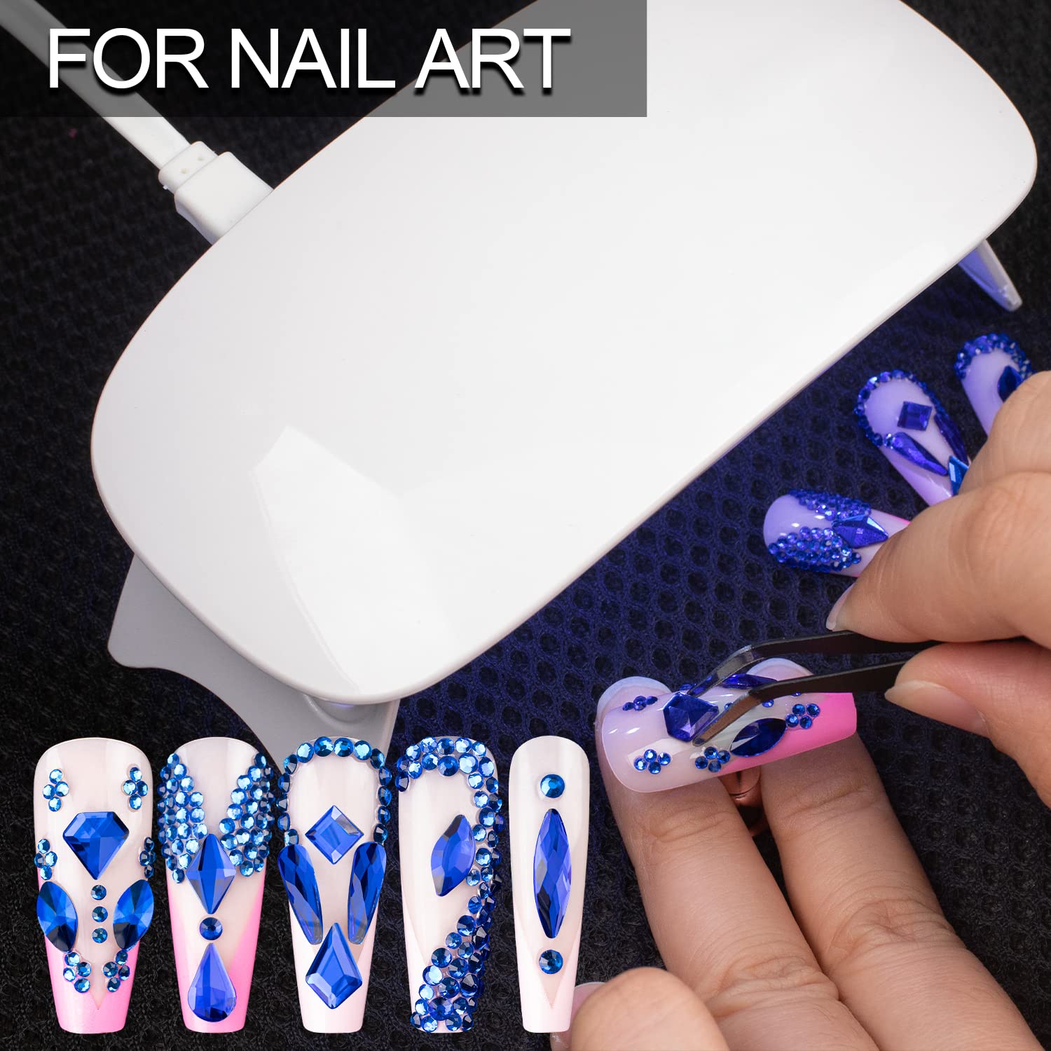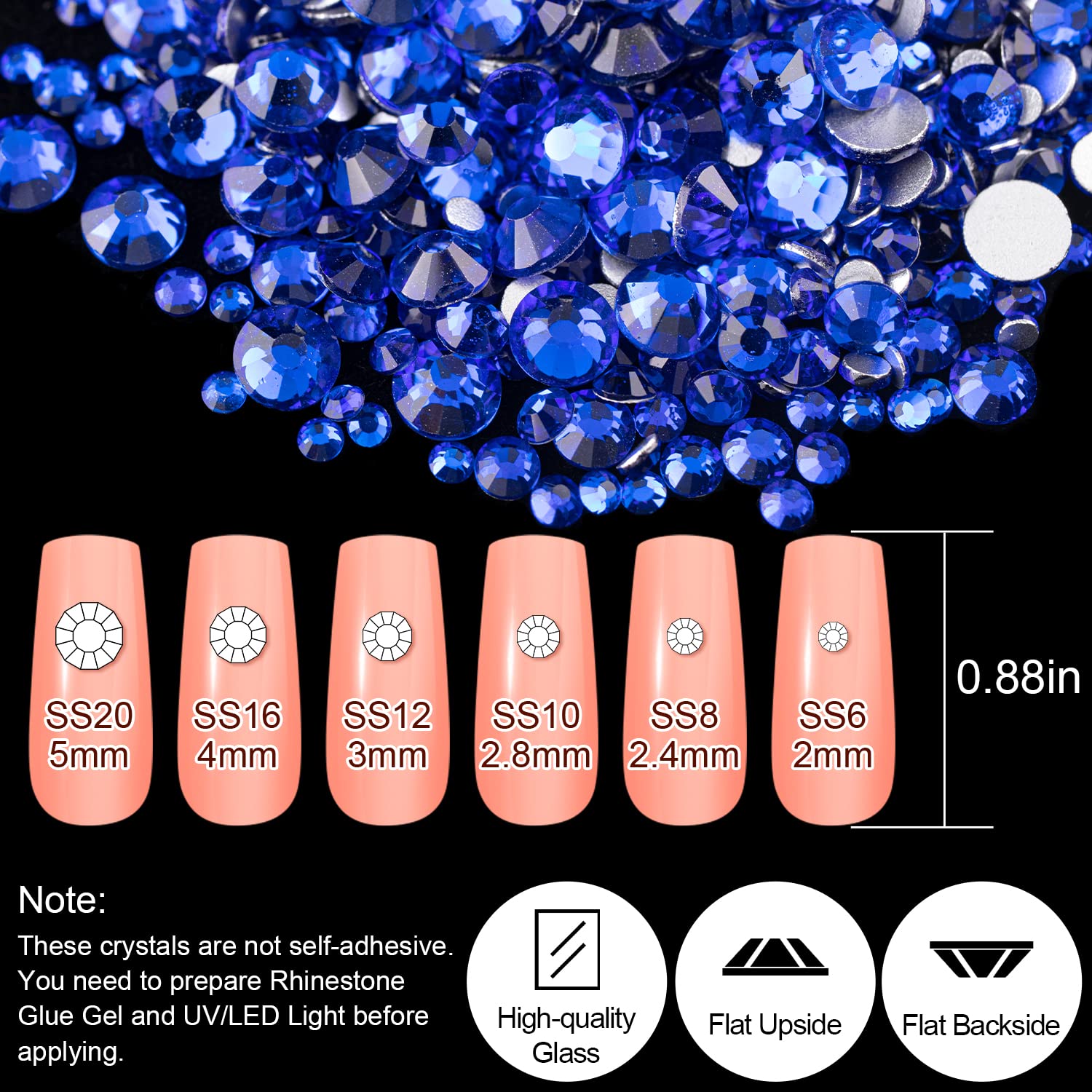- WHAT YOU WILL RECEIVE -- The package includes 1 box of 12 styles of multi-shaped Royal Blue gems, 1 box of mixed round and 6-style multi-shaped Royal Blue stones, 1 pickup pencil and 1 tweezer.