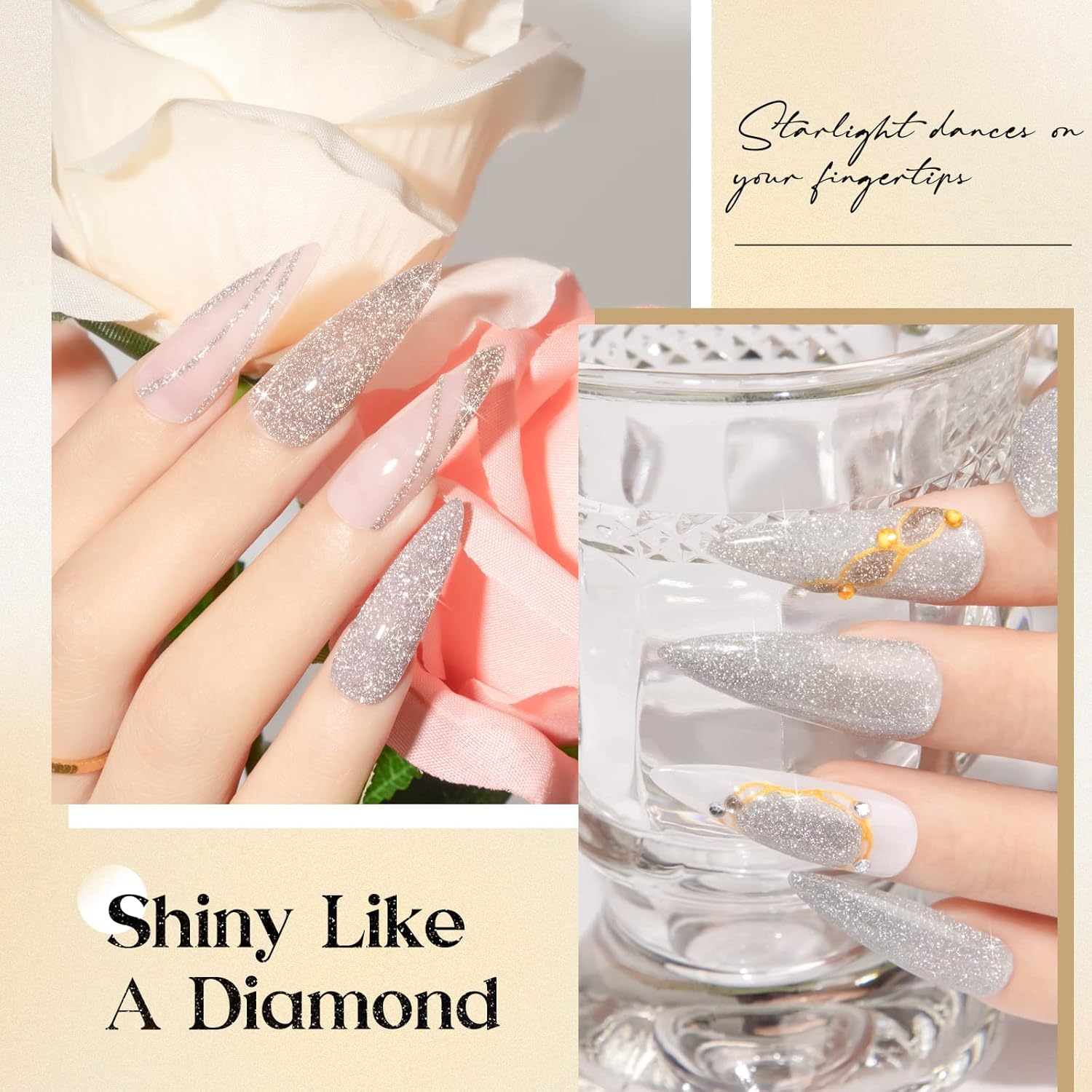MIZHSE Reflective Gel Nail Polish, Glitter Silver and Gold Gel Polish 2 Colors, Sparkle Shiny Diamond Nail Gel Manicure Set Nail Art at Home Salon 10ML