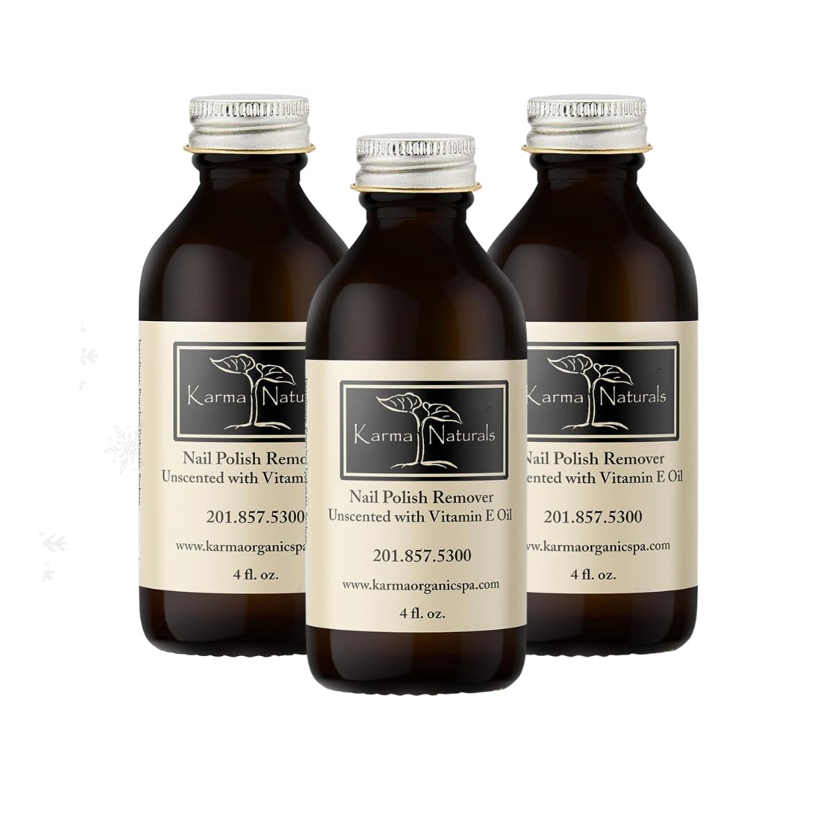 Karma Organic Nail Polish Remover Unscented- Non Toxic, Vegan, Cruelty Free, Acetone Free – Nails Strengthener for Fingernails –12 fl. Oz. (3 Pack)
