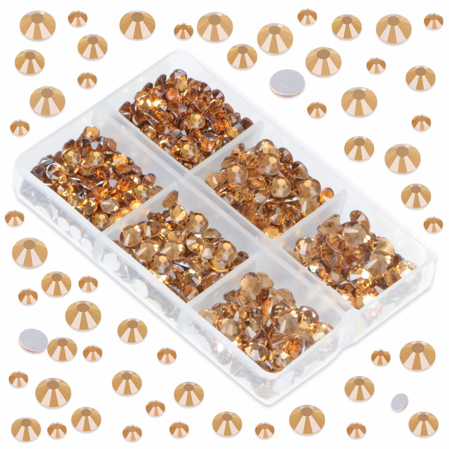 LPBeads 6000 Pieces Lt Topaz Non Hotfix Rhinestones 6 Sizes Round Crystal Glass Flat Back Rhinestones with Tweezers and Picking Pen for Nail Art Crafts Clothes Bags DIY