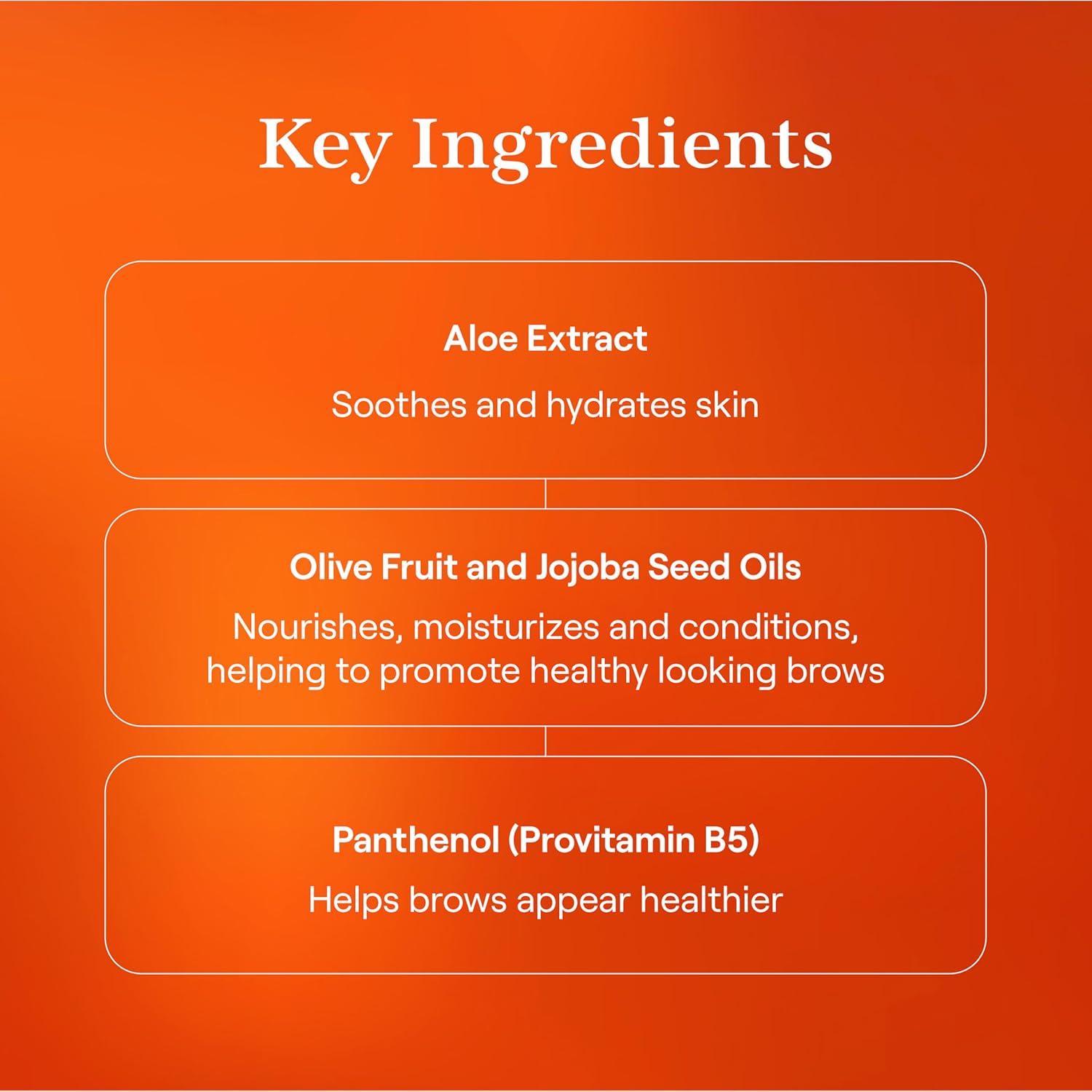- NOURISHING INGREDIENTS: Enriched with Aloe Extract, Olive Fruit, and Jojoba Seed Oils, this brow gel soothes and hydrates skin while nourishing and conditioning your brows for a healthy appearance.