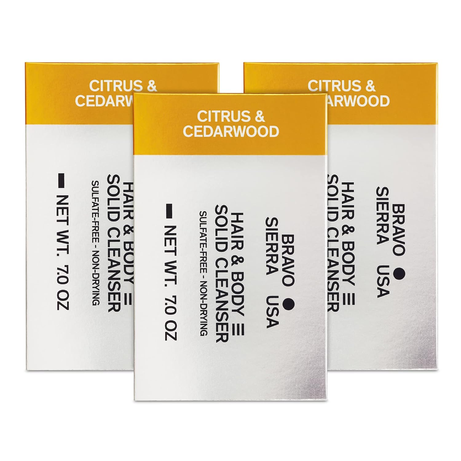 - The Anti-Soap Bar: Bravo Sierra’s Hair & Body Solid Cleanser is an all-in-one body bar and solid shampoo. It’s formulated without soap, sulfates, or drying agents and works into a rich lather. One bar will last 30-40 showers. Citrus & Cedarwood has an invigorating and clean scent with notes of pepper, juniper berry, cinnamon, and cedarwood. 3-Pack.