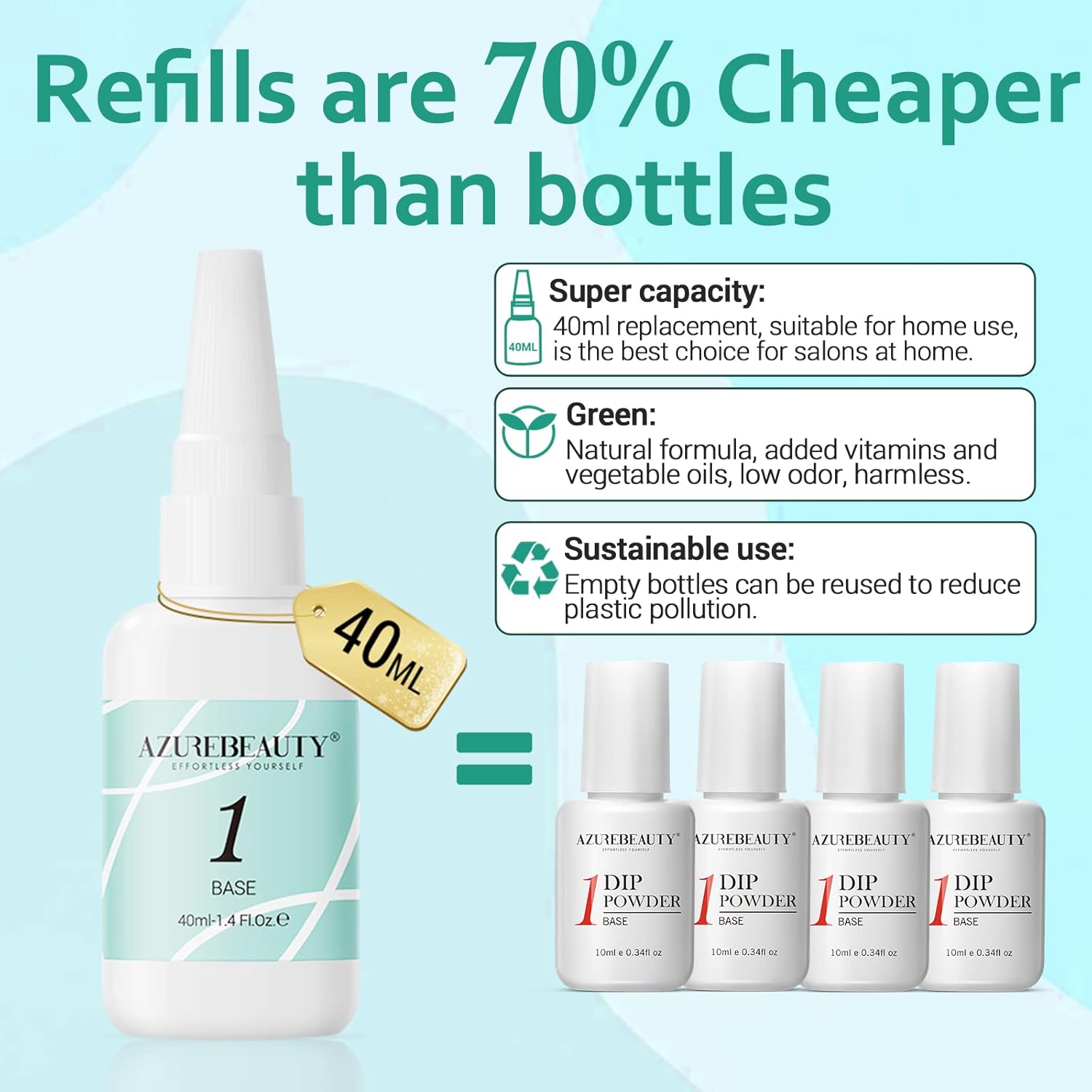 AZUREBEAUTY Dip Powder Base Coat 40ml Large Capacity Dip Base Coat for Refill Dipping Powder Liquid Set French Nail Art Manicure Beginner DIY Salon Home