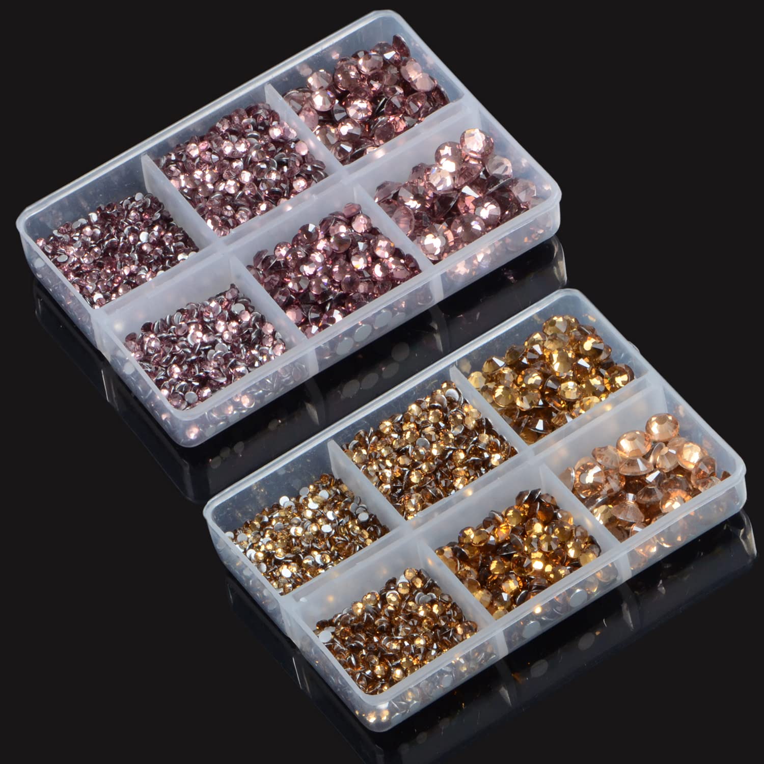 LPBeads 6000 Pieces Topaz and Lt Amethyst Non Hotfix Rhinestones 6 Sizes Round Crystal Glass Flat Back Rhinestones with Tweezers and Picking Pen for Nail Art Crafts Clothes Bags DIY