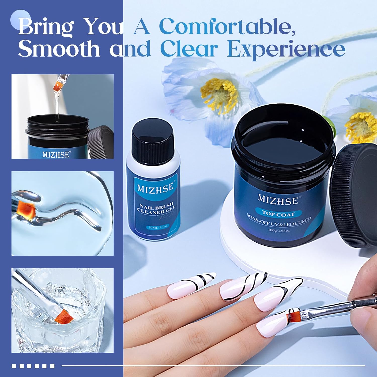 - Peace-of-Mind Customer Service: All our products are green healthy and safe. If our gel top coat kit has any problem, please contact us directly, and we will try our best to help you and offer to replace or refund service. Enjoy professional-level nail art & care with MIZHSE's nail polish top coat and click "Add to Cart" now