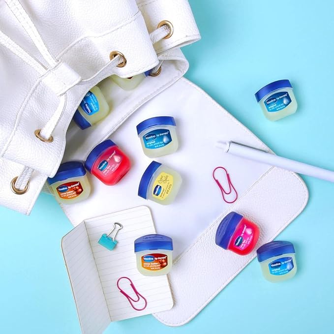 - TRIPLE-PURIFIED MINI VASELINE LIP THERAPY: Our proprietary triple purification process involves distillation, de-aeration, and filtration. The result is a pure product with a smooth consistency.