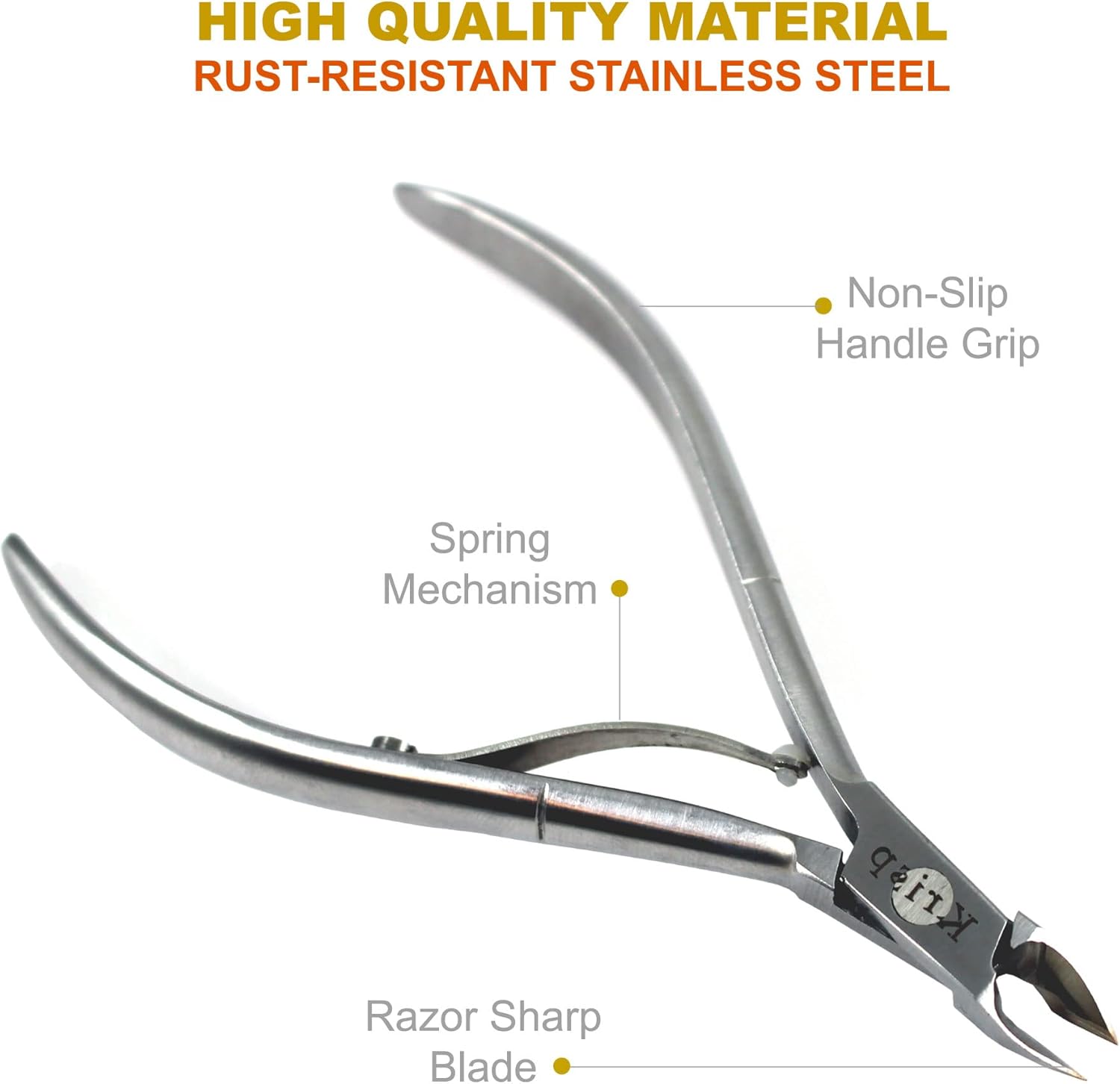 - CUTICLE NIPPERS & CUTICLE PUSHER TOOLS - A dependable manicure pedicure tools to address your fingernail hangnail or ingrown toenail. The ultra-thin, super strong cutting jaws on this cuticle cutter makes it a snap to extract small pieces of dead skin and nails. Finish with cuticle oil to maintain or repair cuticle health. Nippers nail cuticle professional 1/2 jaw cuticle nippers professional 1/4 jaw cuticle nippers professional best nippers nail cuticle professional spoon shaped double ended cuticle pusher remover and cuticle nippers nail cutters for nail tips nail clippers for ingrown toenail nail pliers kit cuticle bit tenaza manicura salon pro cuticle trimmer.