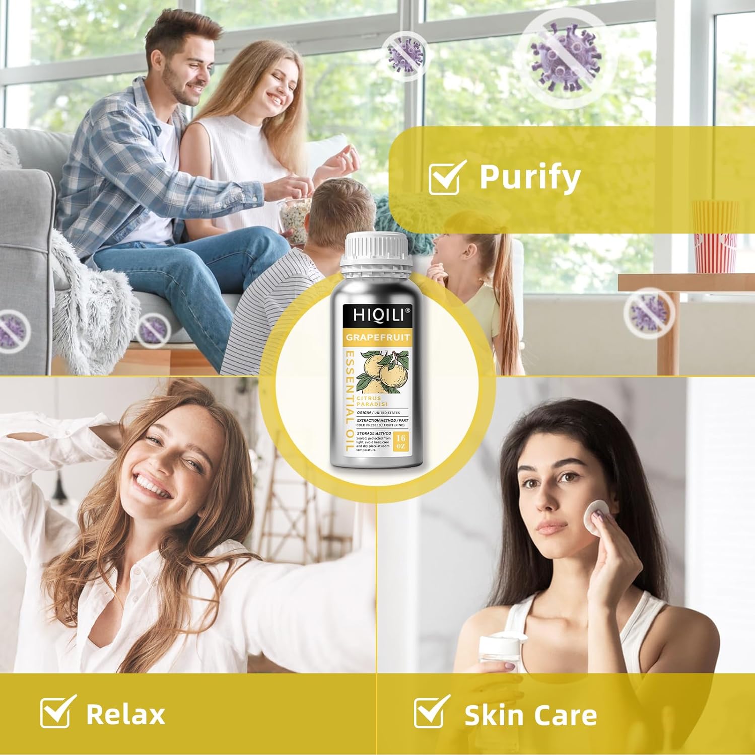 HIQILI 16 Fl Oz Grapefruit Essential Oil, for Diffuser, Skin Care, 100% Pure and Natural