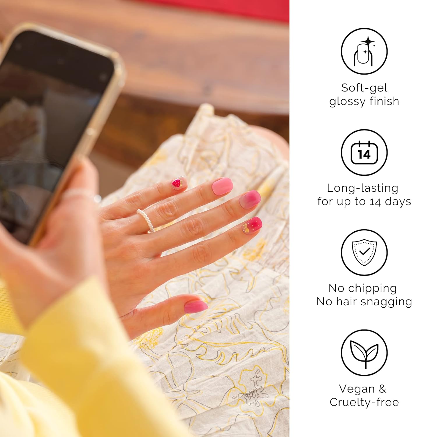 NAILOG Semi Cured Gel Nail Strips, 34 pcs Salon-Quality Gel Nail Stickers, Long Lasting Nail Wraps for Women with Soft Gel Finish | Strawberry Love