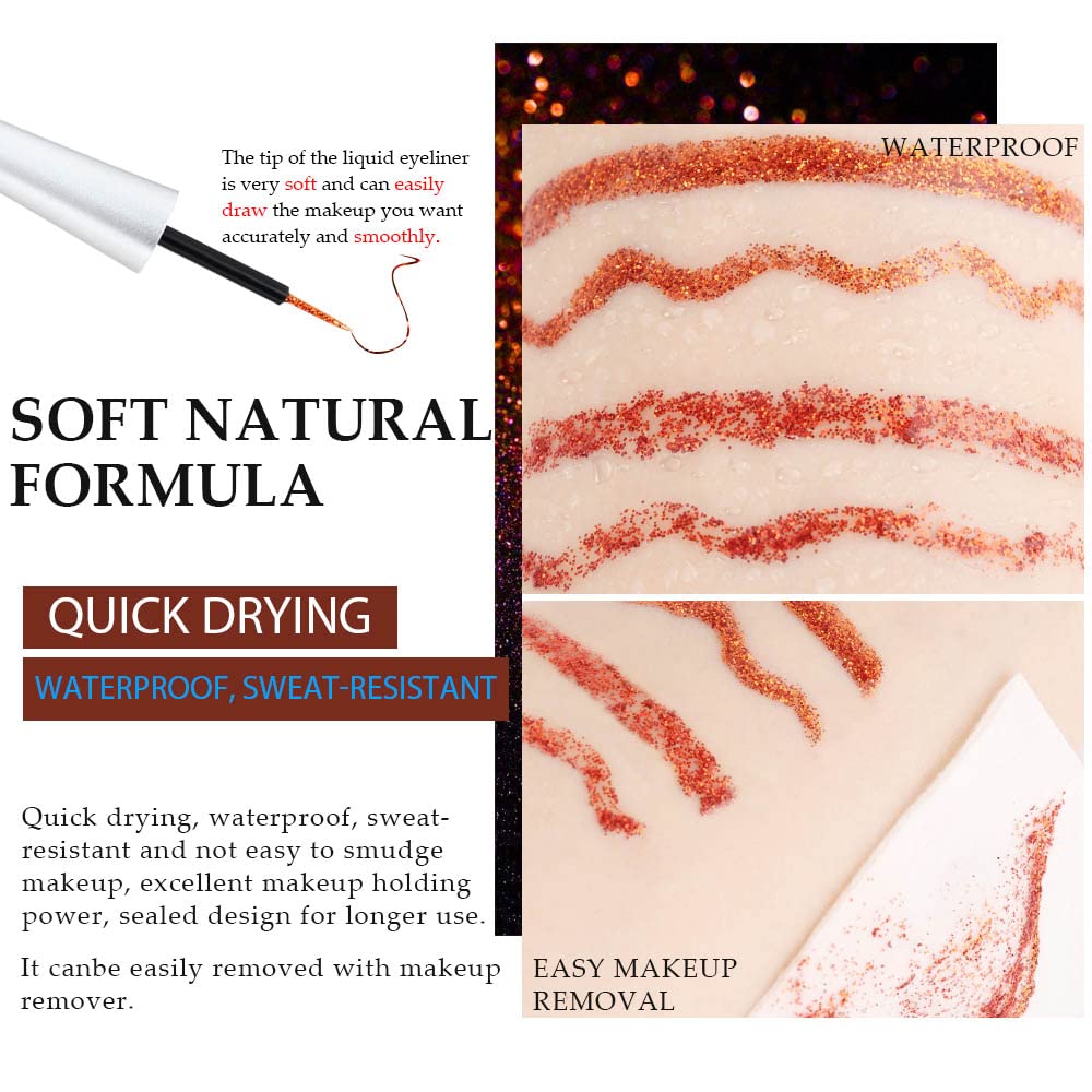 - ❤【Long-wearing and Waterproof】Brilliantly,glitter,sparkle long-wearing liquid eyeliner, highly pigmented, waterproof, strong adhesion. Long-wearing sparkle eyeliner lavishes eyes with incredible glitter and shimmer.