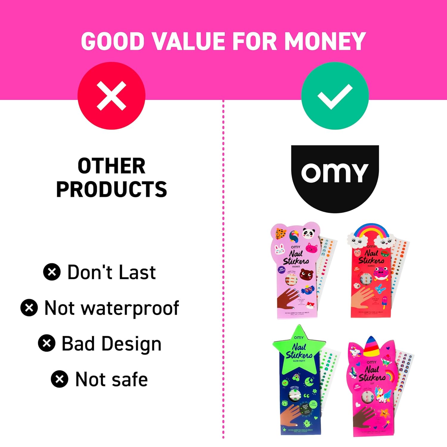 Omy Unicorn Nail Stickers for Kids - 200 Stickers, Waterproof, Durable, Fun, Creative Designs | Strong Enough to Last Through Hand Washing - Easy to Apply, Safe, Non-Toxic | Age 3 and Up