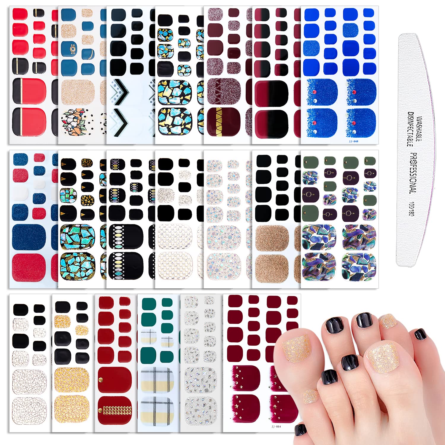 WOKOTO 20 Sheets 440 Pcs Toe Nail Polish Stickers for Toes Nail Full Wraps Glitter Nail Polish Strips Gel Nail Strips Wraps Mermaid Gel Strips for Women