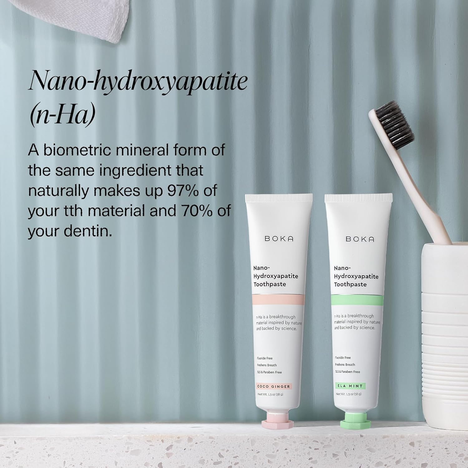 Boka Fluoride Free Toothpaste, Nano Hydroxyapatite Toothpaste, Appropriate for Sensitive Teeth - for Adult, Kids Oral Care - Ela Mint, Coco Ginger Flavor, 1.3 Fl Oz 2Pk US Manufactured
