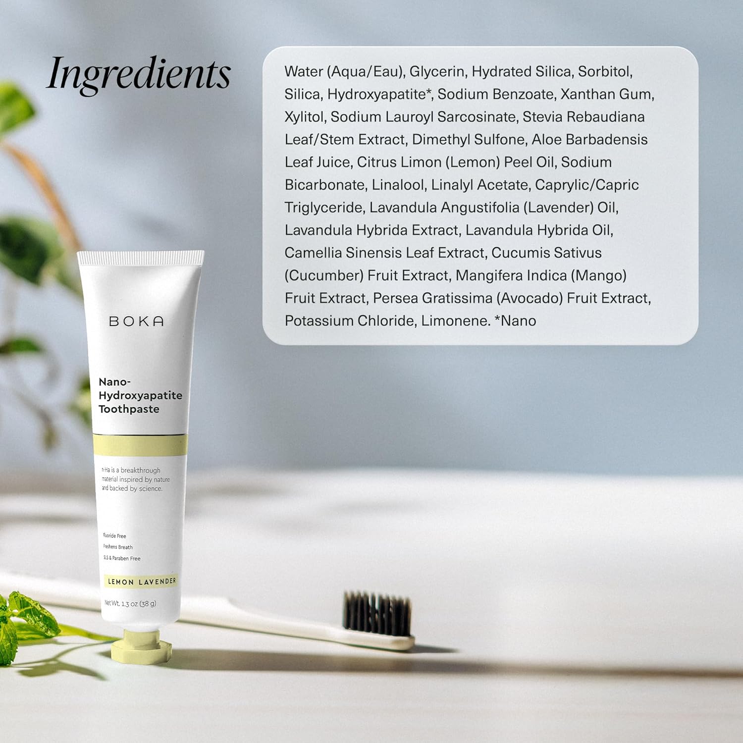 Boka Fluoride Free Toothpaste, Nano Hydroxyapatite Toothpaste, Appropriate for Sensitive Teeth - for Adult, Kids Oral Care - Lemon Lavender Flavor, 1.3 Fl Oz 2Pk US Manufactured