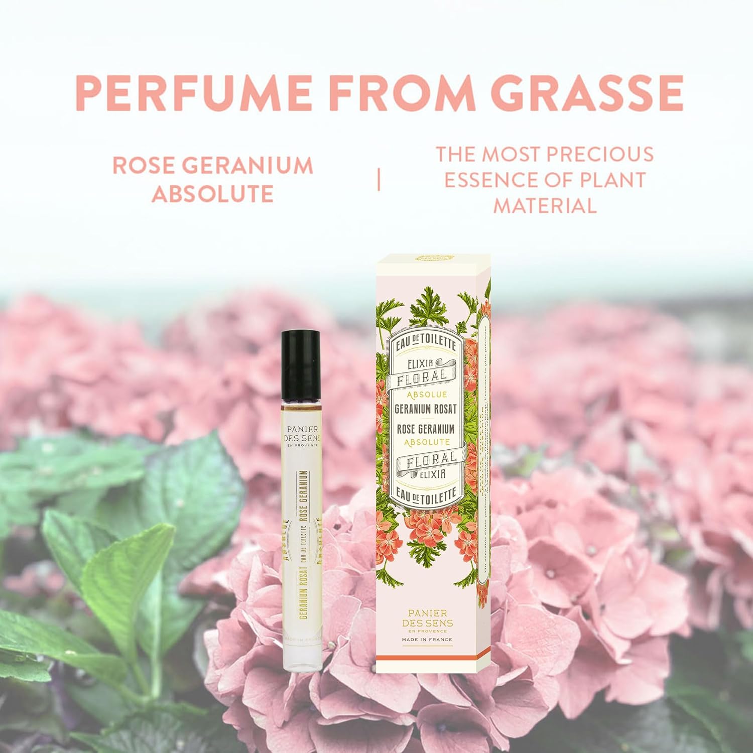 Panier des Sens β Geranium Rosat Roll-on Eau de Toilette 0.3 Floz β Floral & Herbal Fragrance - Mini Perfume for Women - Parfum Crafted in Grasse, France - Daily Use - Light Travel Perfume