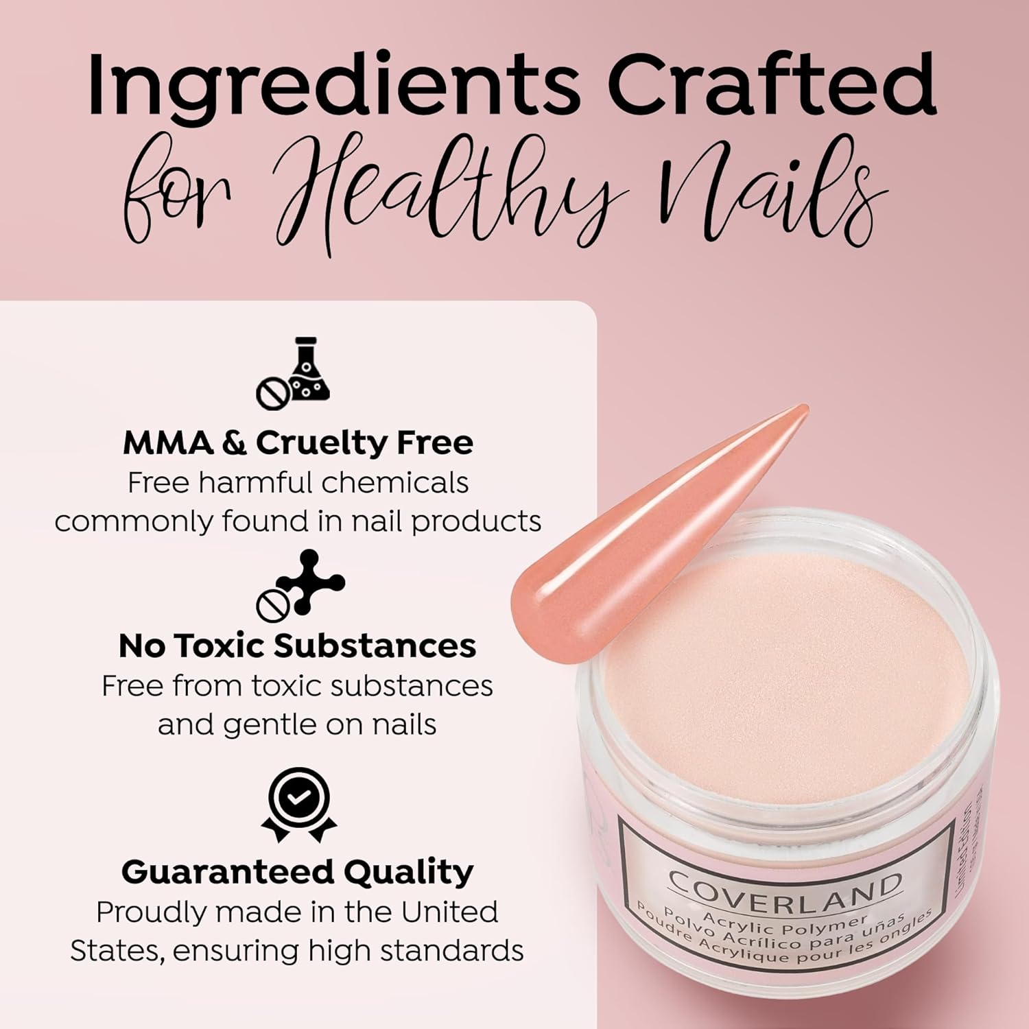 - βοΈππππ ππππππππ πππππ: The flexibility and adhesion properties of Coverland colored acrylic nail powder make it easy to shape nails with precision, and offers nice control for professionals who prefer to work with a polymerization rate of moderate to fast.