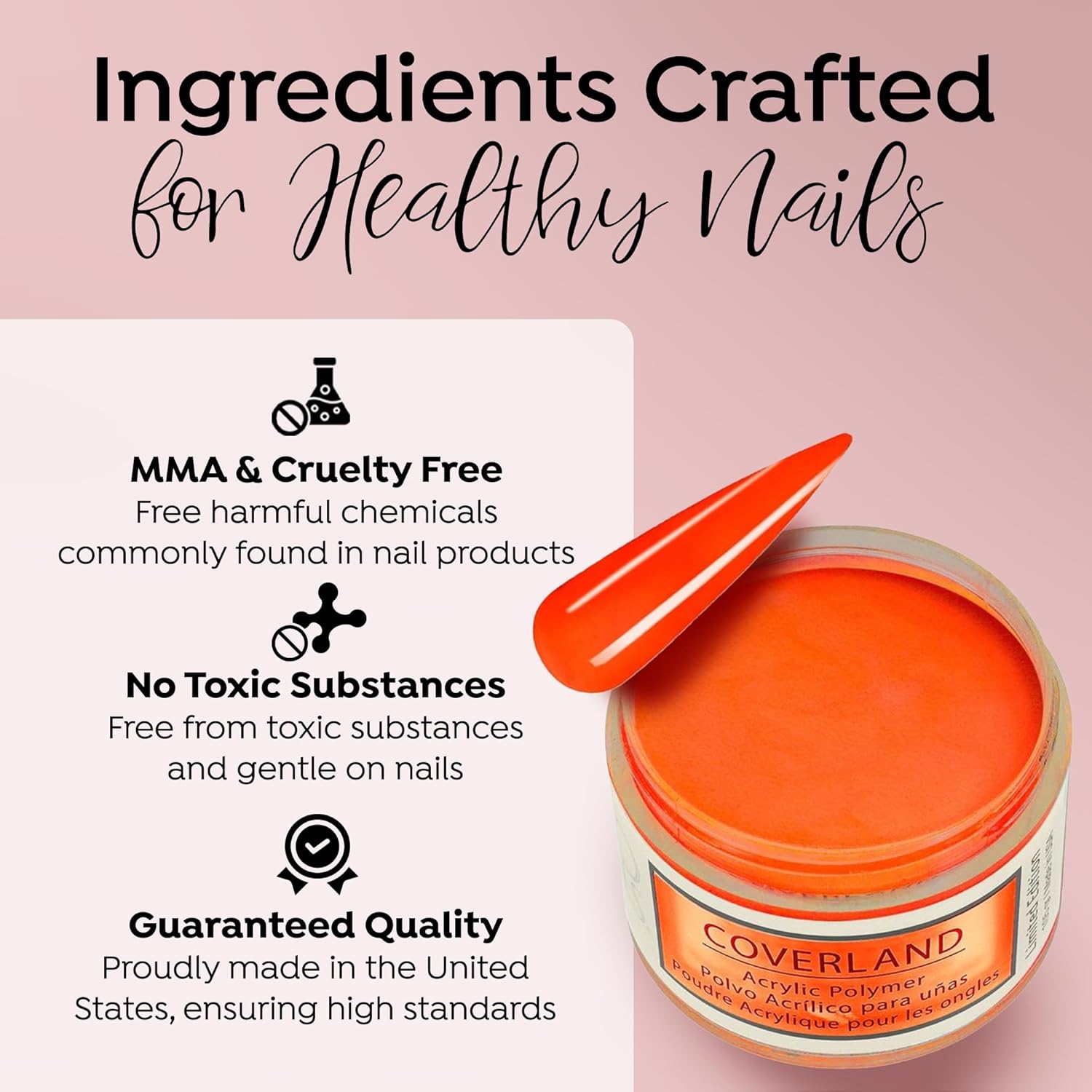 - βοΈππππ ππππππππ πππππ: The flexibility and adhesion properties of Coverland colored acrylic nail powder make it easy to shape nails with precision, and offers nice control for professionals who prefer to work with a polymerization rate of moderate to fast.