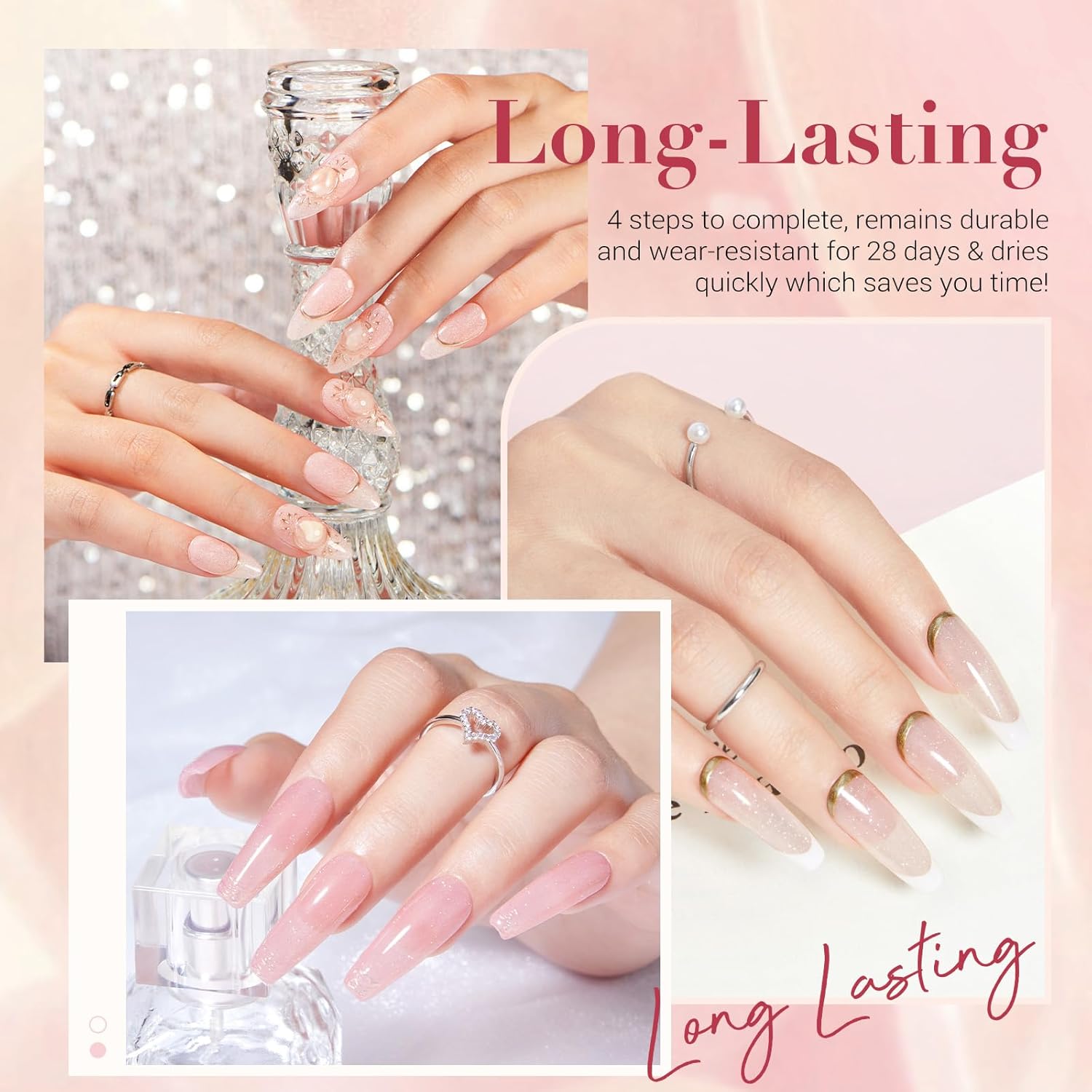 AZUREBEAUTY Jelly Dip Powder Nail Kit, Transparent Glitter Nude Pink Sheer Peach Neutral 4 Colors Dipping Powder Liquid Set with Base/Top Coat Activator for French Nail Art Manicure DIY Home Gifts