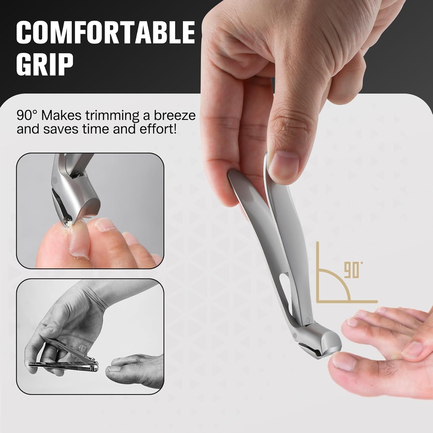 - Effortless Trimming: Say goodbye to struggling with traditional nail clippers! FERYES angled head precision toenail clippers is designed with a curved 7-shape head, allowing you to trim toenails with ease, reducing the need for uncomfortable bending. No more straining or awkward positions – achieve smooth and precise cuts effortlessly!