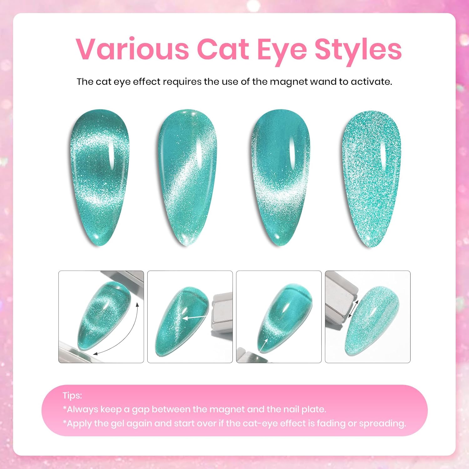 - 【Easy Application and Good Tenacity】With proper application, last at least 4 weeks. Gorgeous cat eye nail art set is perfect for all daily working or dating, vacations party or ceremony activity. Kindly note: After opening valid for 12 months.This item is UV gel. It is still sticky after curing. It must be used with a base coat and top coat! This item does not include base&top coat, which needs to be purchased separately.