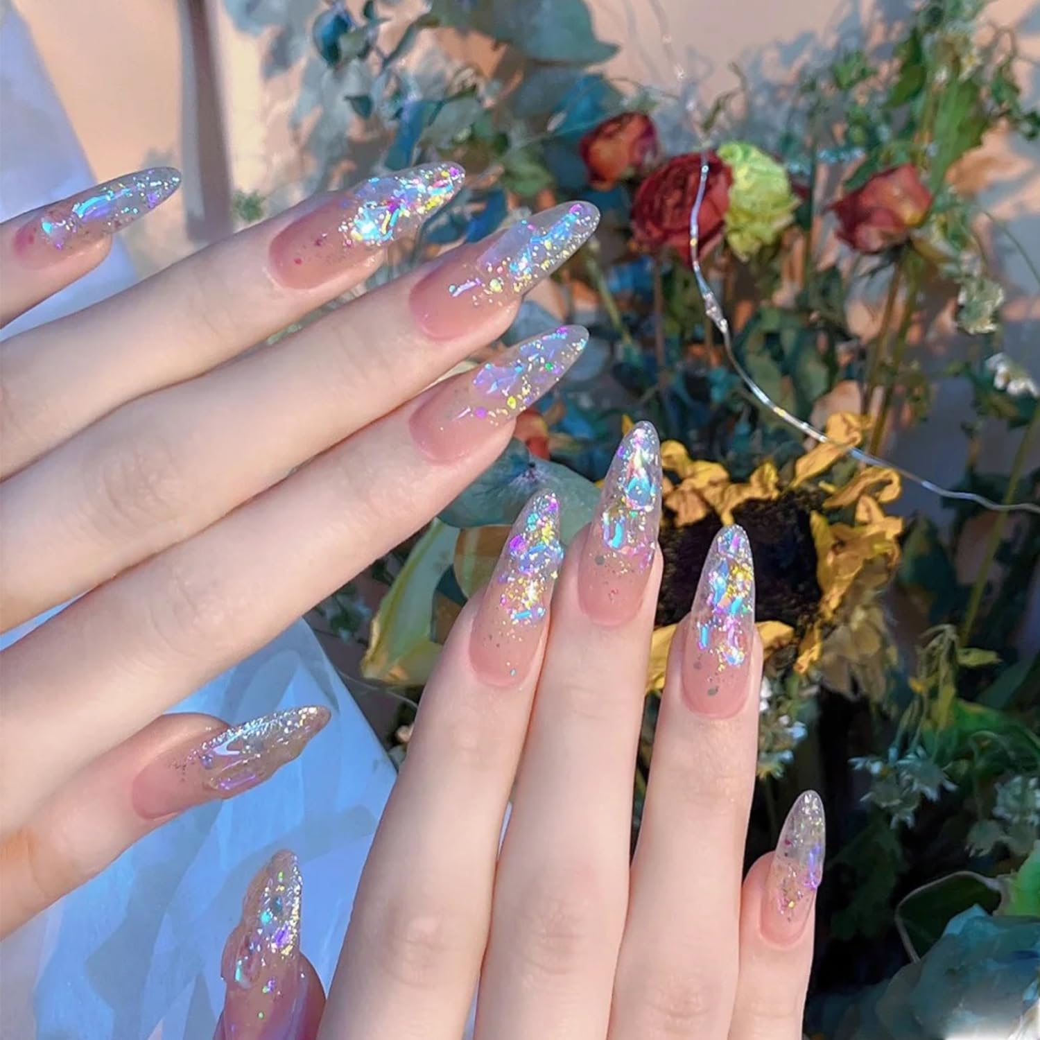 - ★Aurora nail rhinestones - contains 2 boxes nail rhinestones and gems,aurora flat back nail rhinestones and multi-shape crystal nail rhinestones, 1pcs tweezer, 1pcs rhinestone picking pen and 6 sizes round aurora nail gems for nails