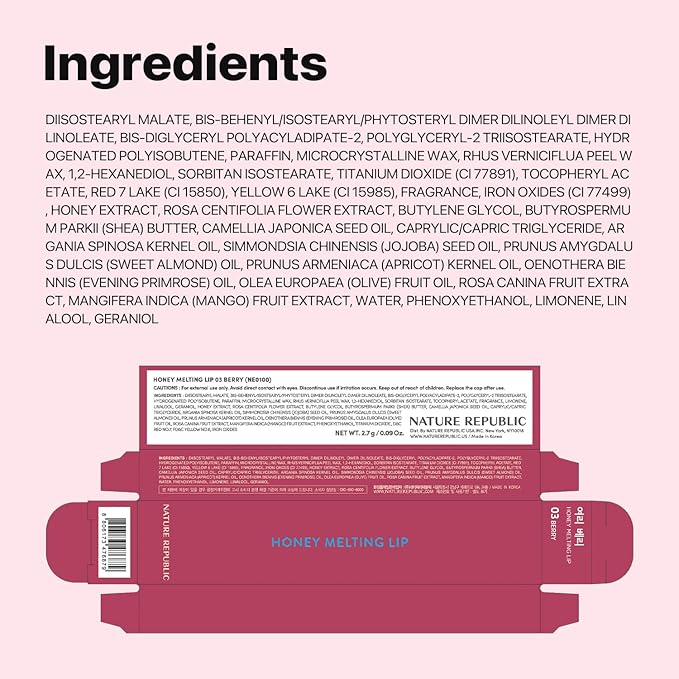 Nature Republic HONEY MELTING LIP (03 BERRY) K-BEAUTY, Lip Plumper, Tint, Balm, Korean, Lip Gloss, Cute, Glow