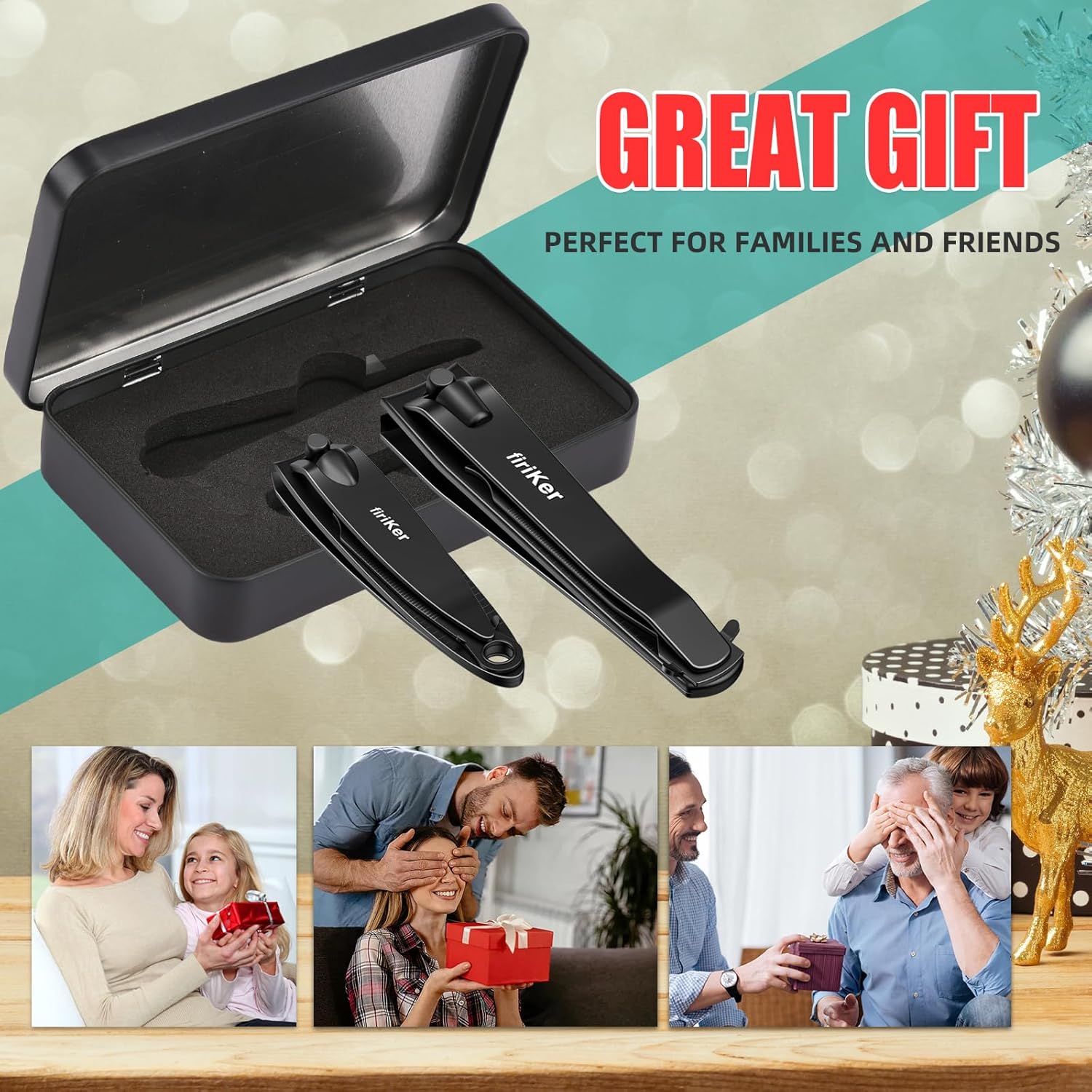 Nail Clippers Set, Heavy Duty Black Matte Stainless Steel nail Clipper with Nail File,Fingernail and Toenail Clipper Cutters, Nail Clipper Tools for Men & Women,Christmas Best Gift Tin Case