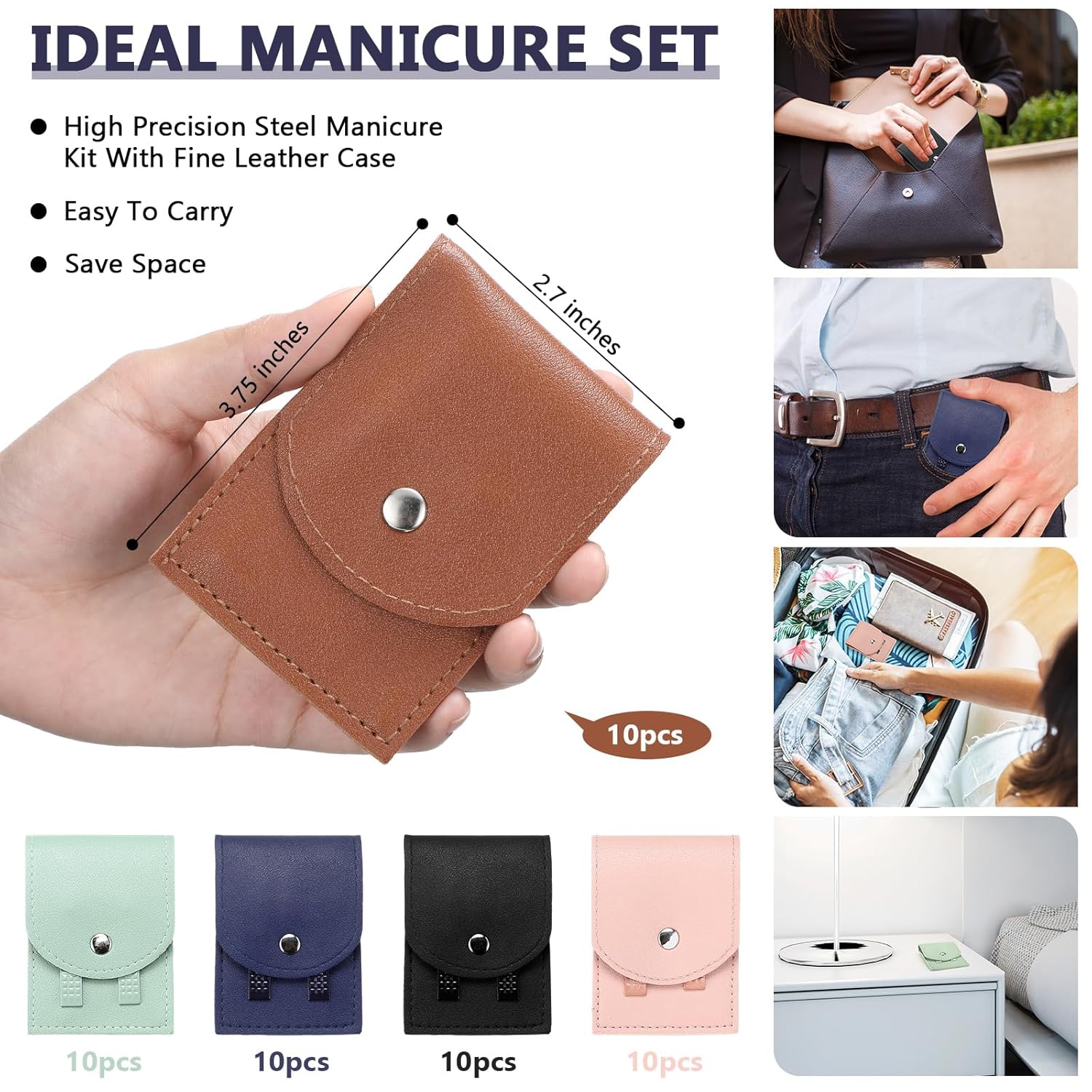 - Easy to Carry: personal care nail clipper set are gathered in a travel case, which measures about 2.7x3.75 inches, easily opened at the touch of a button; Each tool being securely and orderly fixed inside a notch; Lightweight and compact, this travel case fits conveniently in most of your bags