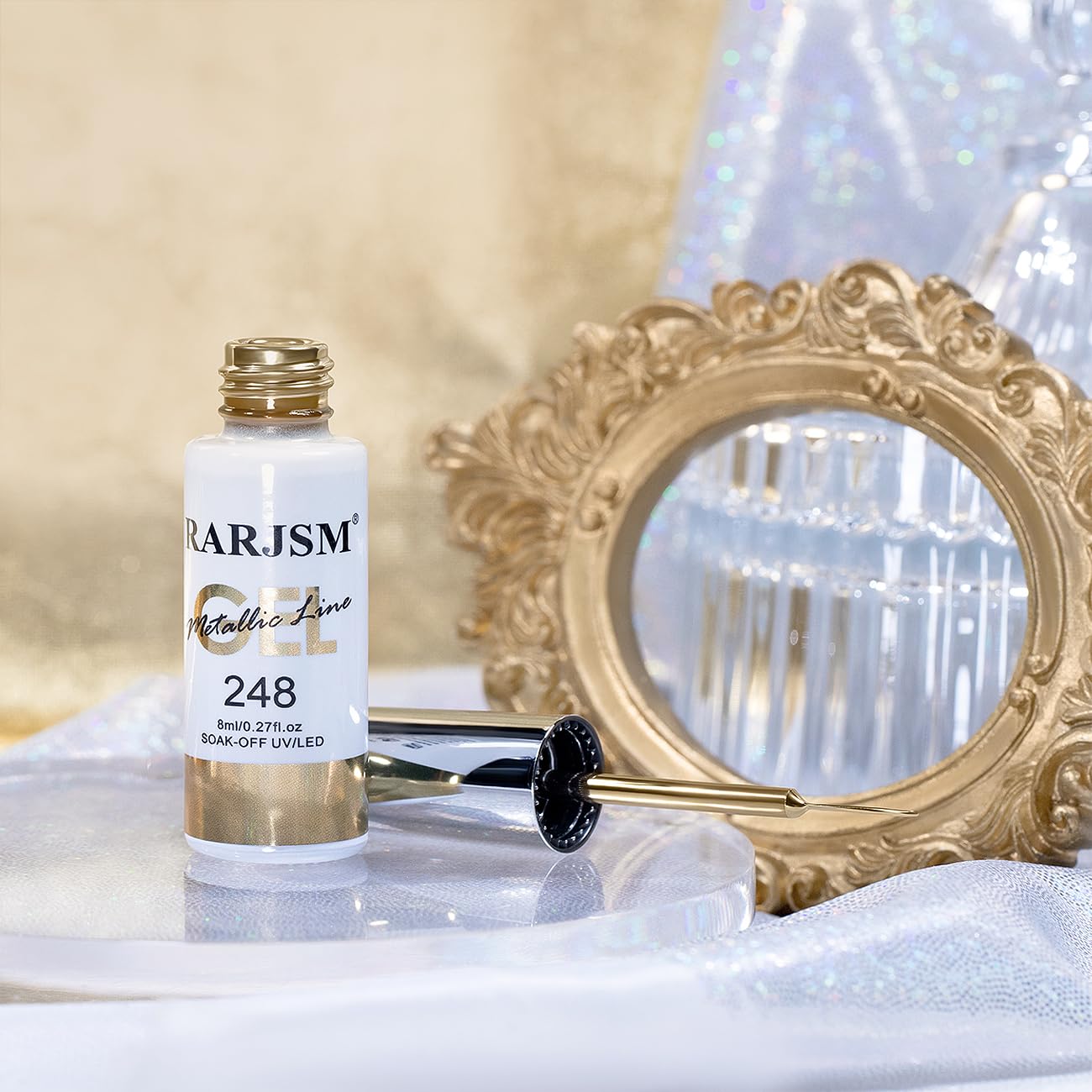 RARJSM Metallic Nail Art Gel Liner Bronze Gold Mirror Chrome 3D Effect Gel Nail Polish 8ml Build in Thin Brush Metal Painted Drawing Striper Painting Gelpolish Soak off Curing Requires for Home Salon