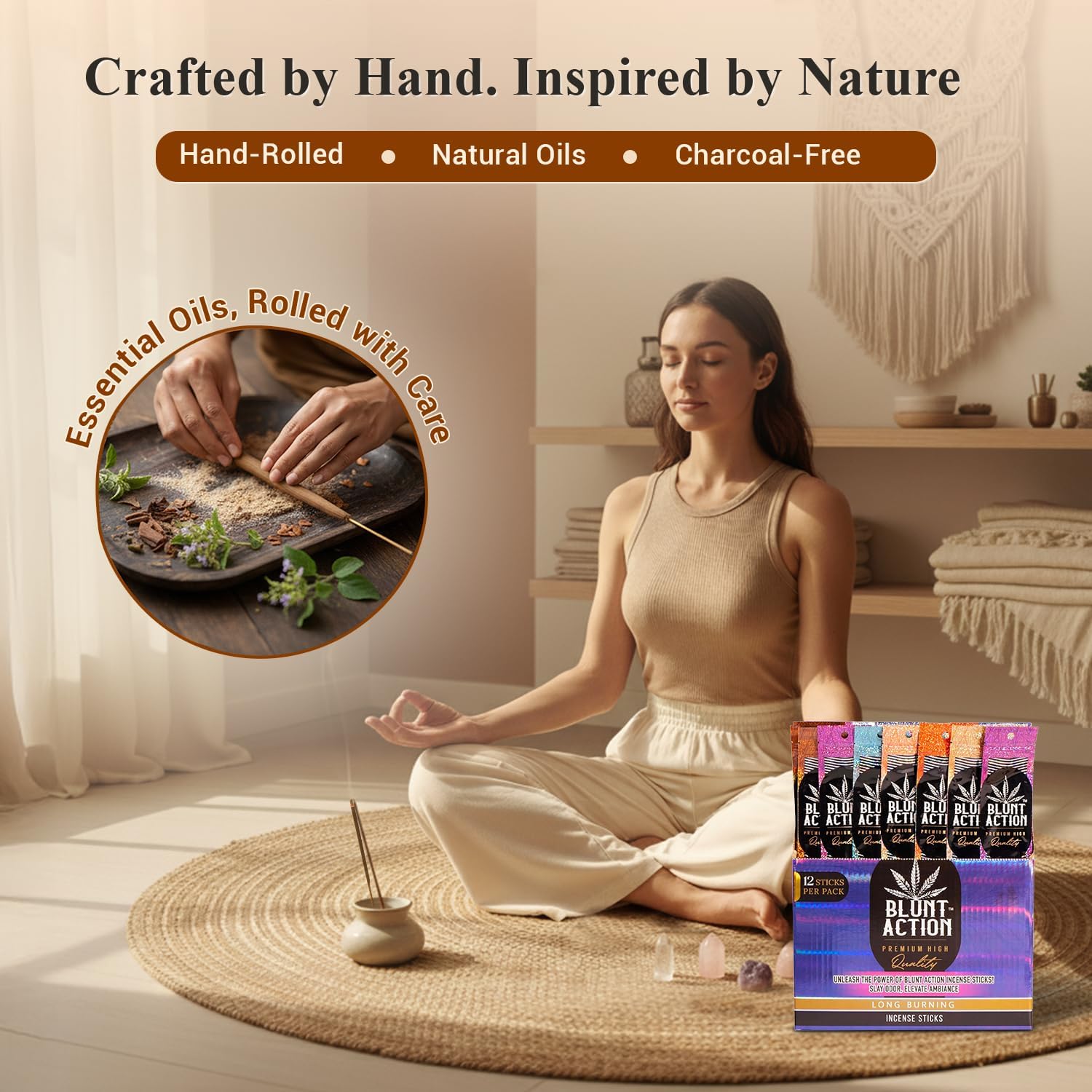 - AROMATHERAPY: Blunt incense sticks are specially formulated with natural essential oils to create specific atmospheres or effects, promoting relaxation, meditation, aromatherapy, or spiritual practices while ensuring a long-lasting fragrance and optimal performance.