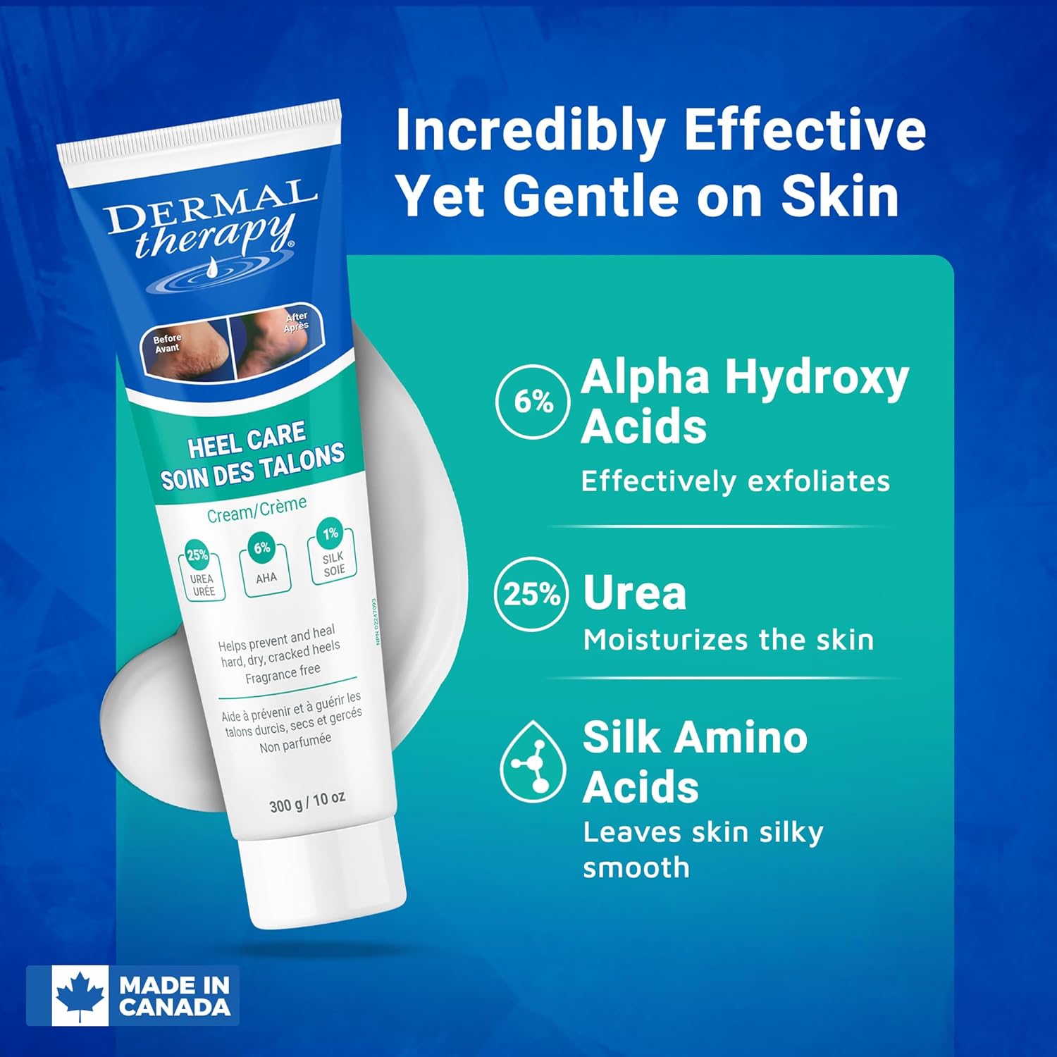 - 🦶 ACHIEVE SOFT HEELS QUICKLY: Transform dry, rough skin into velvety-smooth heels with this intensive foot repair cream. Powered by a potent blend of 25% urea and 6% AHAs, this intensive foot cream provides deep moisturization and gentle exfoliation to repair even the driest, most severely cracked heels and calluses. Experience fast-acting relief and visibly softer, smoother feet.