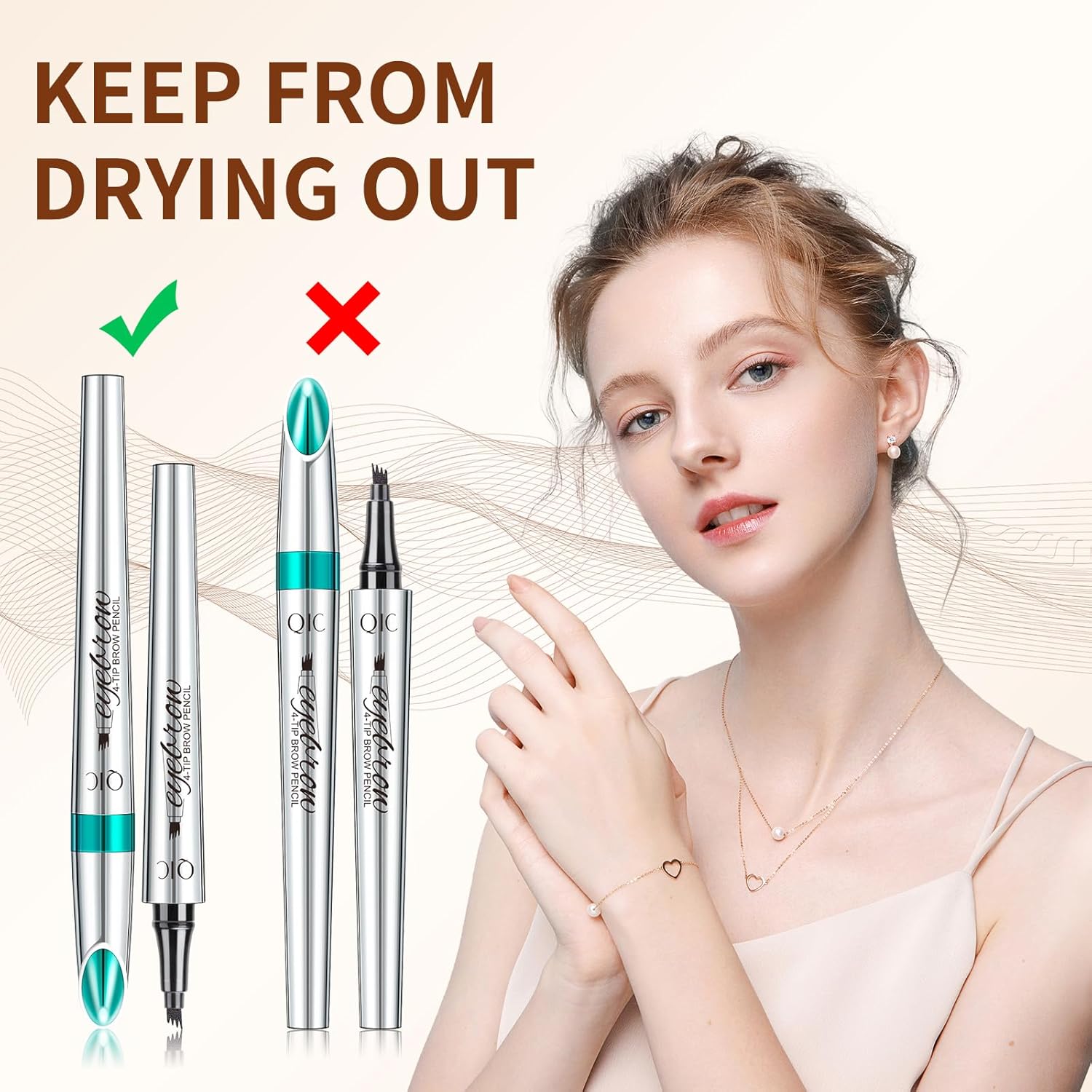 QIC Eyebrow 4 Tip Brow Pencil, Microblading Pen Waterproof Long-Lasting with Upgrade Micro-Fork Tip Applicator for Natural Brows (Dark Brown-02)