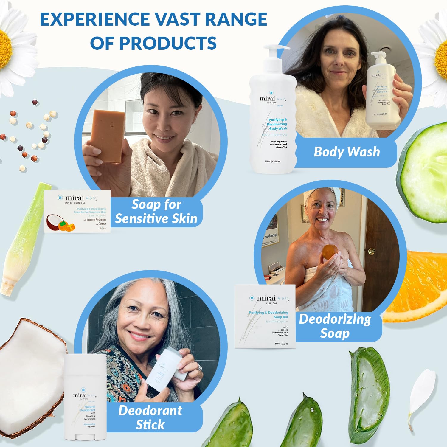 Mirai Clinical's Deodorizing Body Wipes for Women & Men - Cleansing & Refreshing Deodorant Wipes Women & Men Love - Fights Nonenal Body Odor - For Whole Body Usage - Unscented - 3 packs.