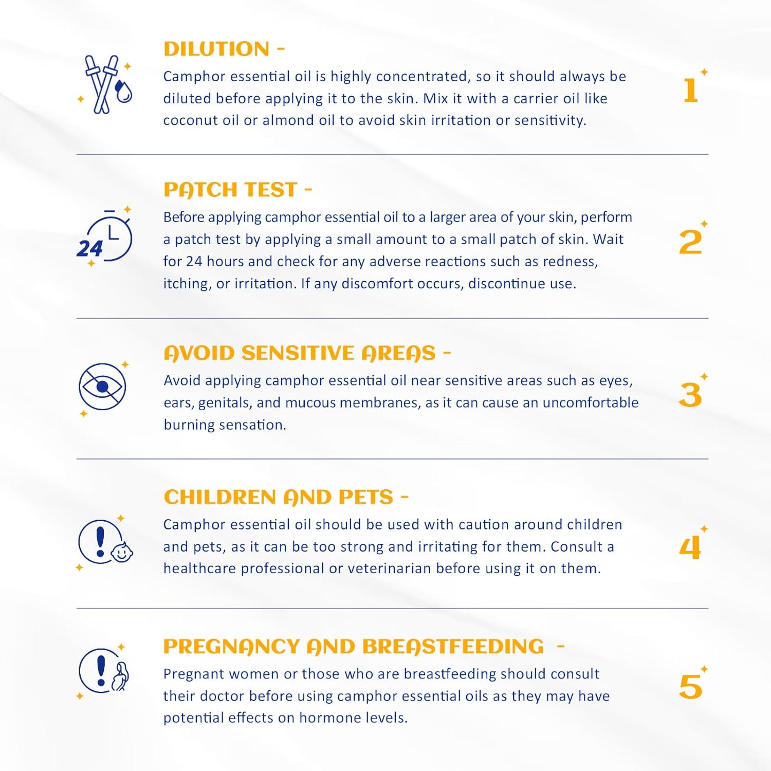 - Ingredient & Aroma: 100% pure camphor essential oil, sourced from the premium camphor tree, contains no additives or diluents and retains the plant's natural components and properties. Fresh and slightly pungent, with a camphoraceous odor