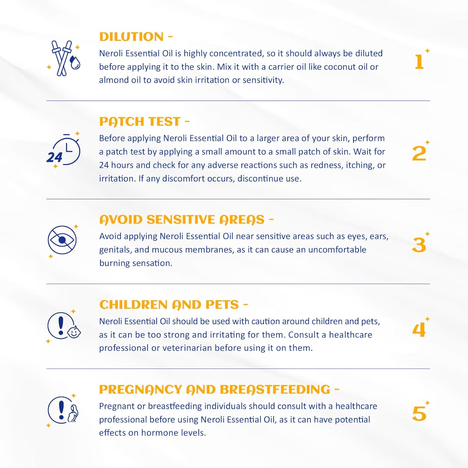 - Safer: Our neroli essential oil is steam distilled from the flowers of the neroli flower in Egypt and is tested for purity and composition by GC/MS, MSDS, COA, IFRA, etc