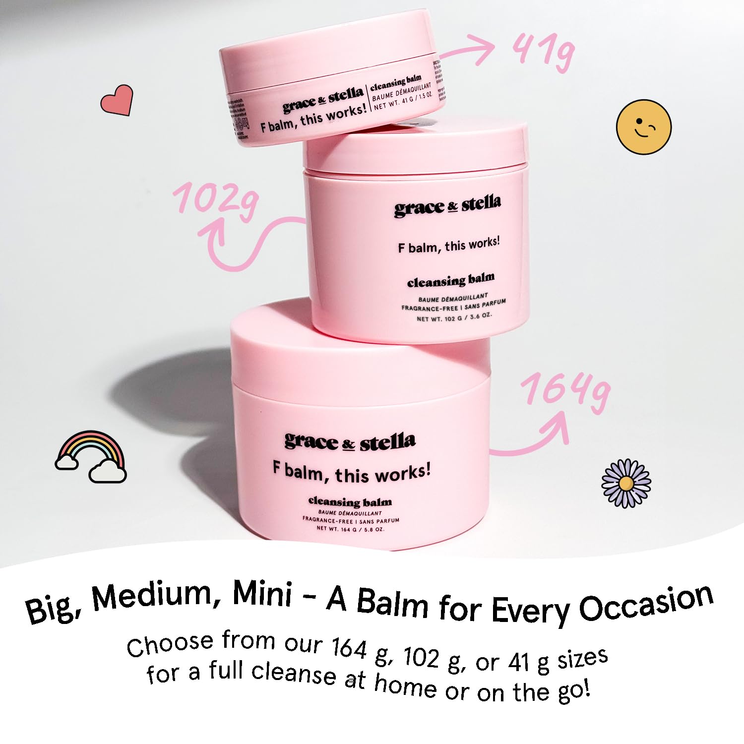 grace & stella Cleansing Balm - Travel Size Makeup Remover - Deep Cleansing & Hydrating Face Cleanser - Dissolves Waterproof Make Up, SPF & Impurities - Gentle on Skin - Vegan Skincare (41 g/ 4.3 oz)
