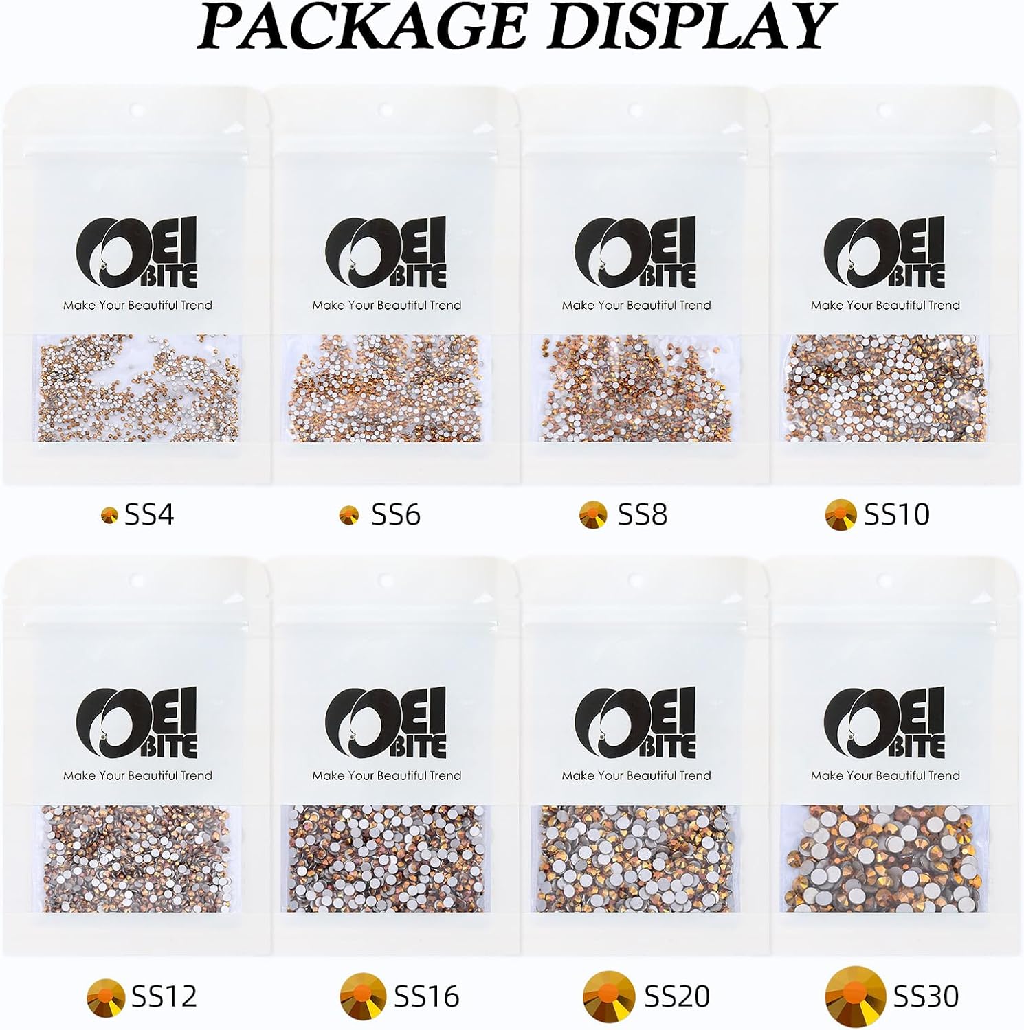 - Product Packaging: Bags packaging SS8 2.3~2.5 MM - 1440 Pcs gold flatback rhinestones
