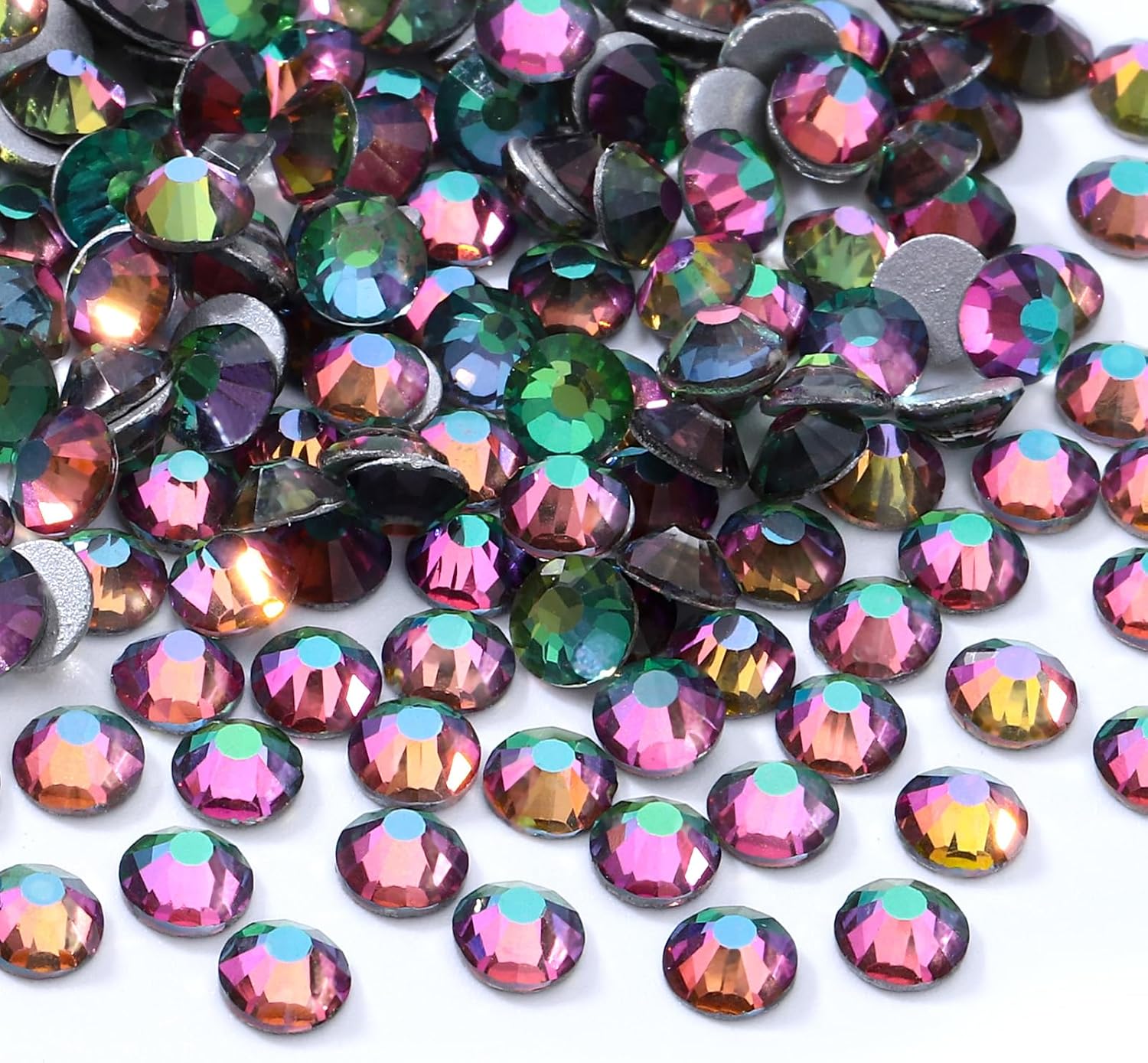 Green Volcano Flatback Rhinestones, Glass Rhinestones for Nail Art and Craft, Glue Fix, Loose Crystal Gemstones(Green Volcano, SS30, 288pcs, 6.4-6.6mm)