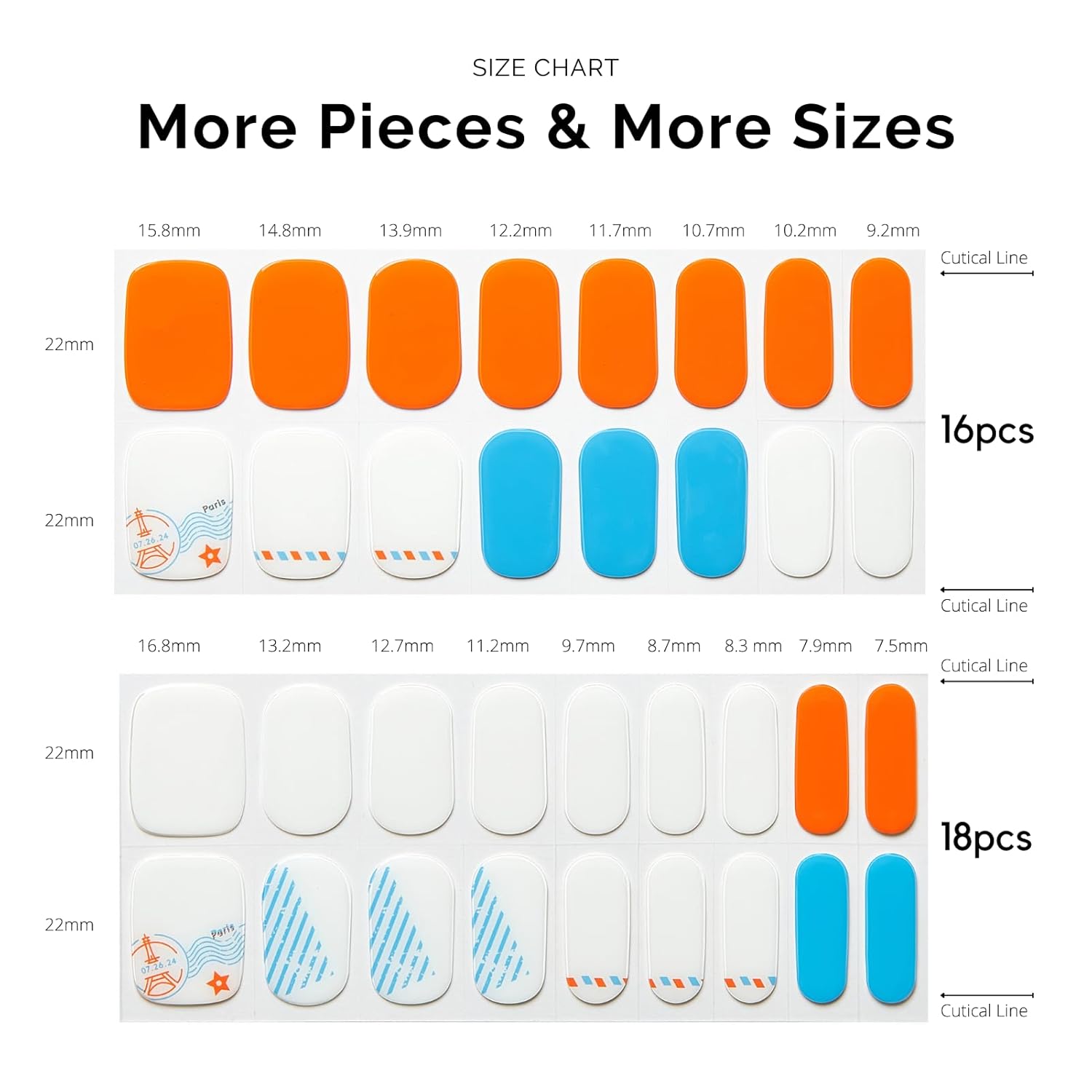 - 【WHAT YOU GET】34 Pieces gel polish strips in 17 sizes, 2 prep pads, 1 nail file, and 1 wooden stick. -Our semi cured nail strips are free from toxic, animal-derived, or harmful ingredients and are vegan, safe to use, and odorless. A perfect cost & time-saving DIY manicure kit.