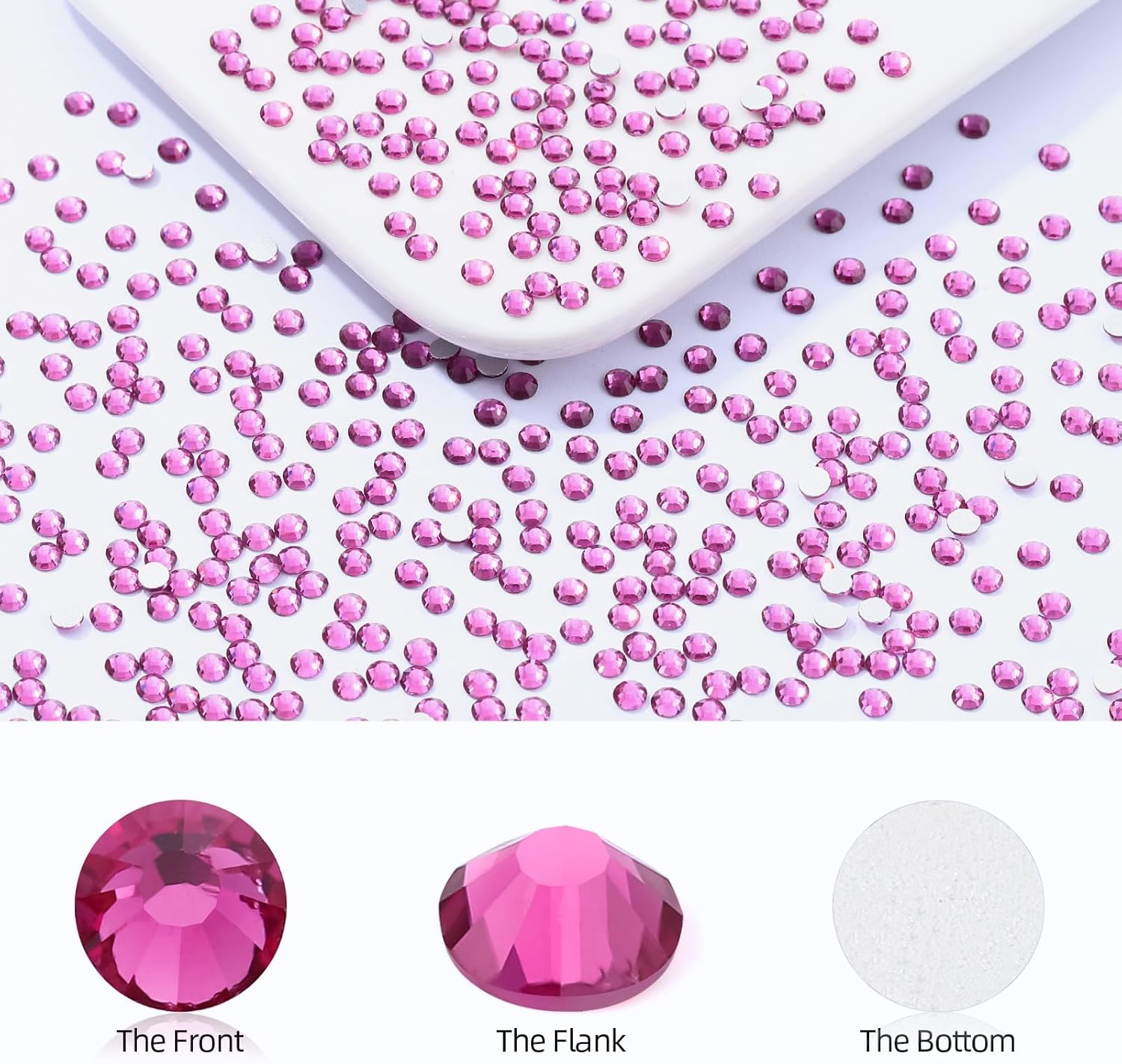 Fuchsia Flatback Rhinestones, Glass Rhinestones for Nail Art and Craft, Glue Fix, Loose Crystal Gemstones(Fuchsia, SS8, 2880pcs, 2.3-2.5mm)